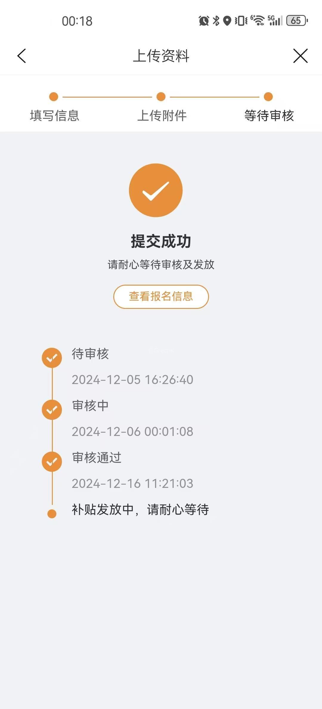 尊敬的市政领导,你们好! 本人于2024年12月6日在东莞“建行生活”渠道申请了汽车置换补贴,已于2024年12月16日显示审核通过,等待补贴发放。但是截止当前时间(2025年2月21日),已过去2个月+,仍未有发放或公示信息,请问该购车补贴款项一般在申请通过后,还需要多久才能公示或到帐呢? 通过东莞市政商务局官网的历史公示,都没有显示“建行”渠道补贴发放信息,都是“微信”和“云闪付”的,请问“建行生活”这个申请渠道的公示和发放信息哪里能看到?
