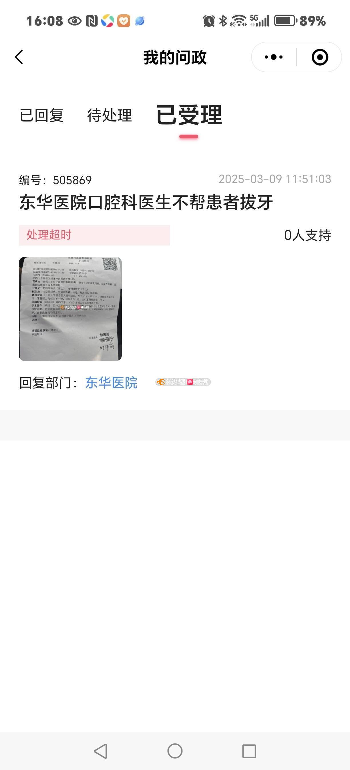 之前投诉松山湖东华医院口腔科科医生!为何迟迟不回复!不接受投诉!