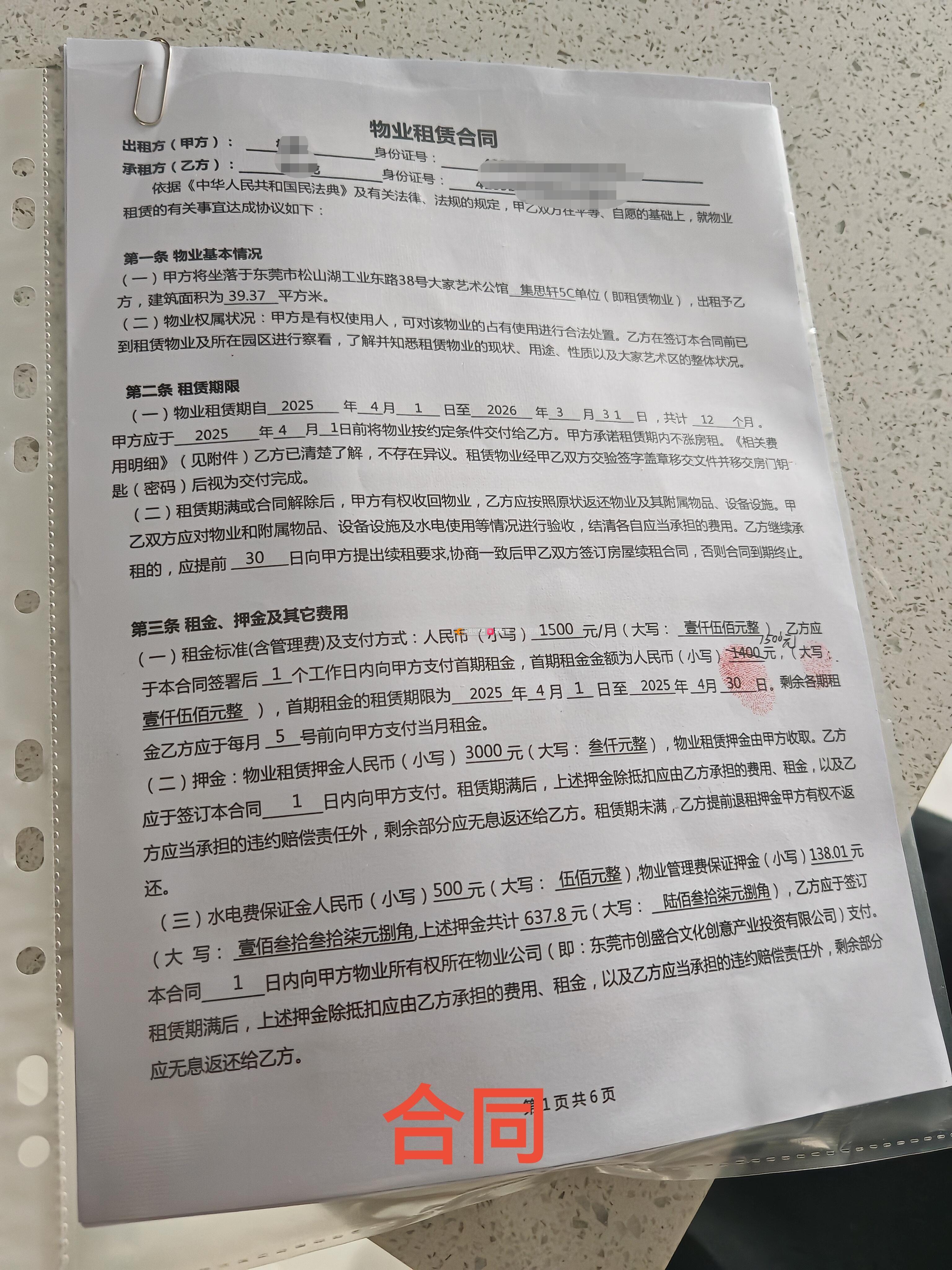 投诉松山湖大家艺术区集思轩503室物业及出租方隐瞒民宿及隔音问题,要求退租退押金