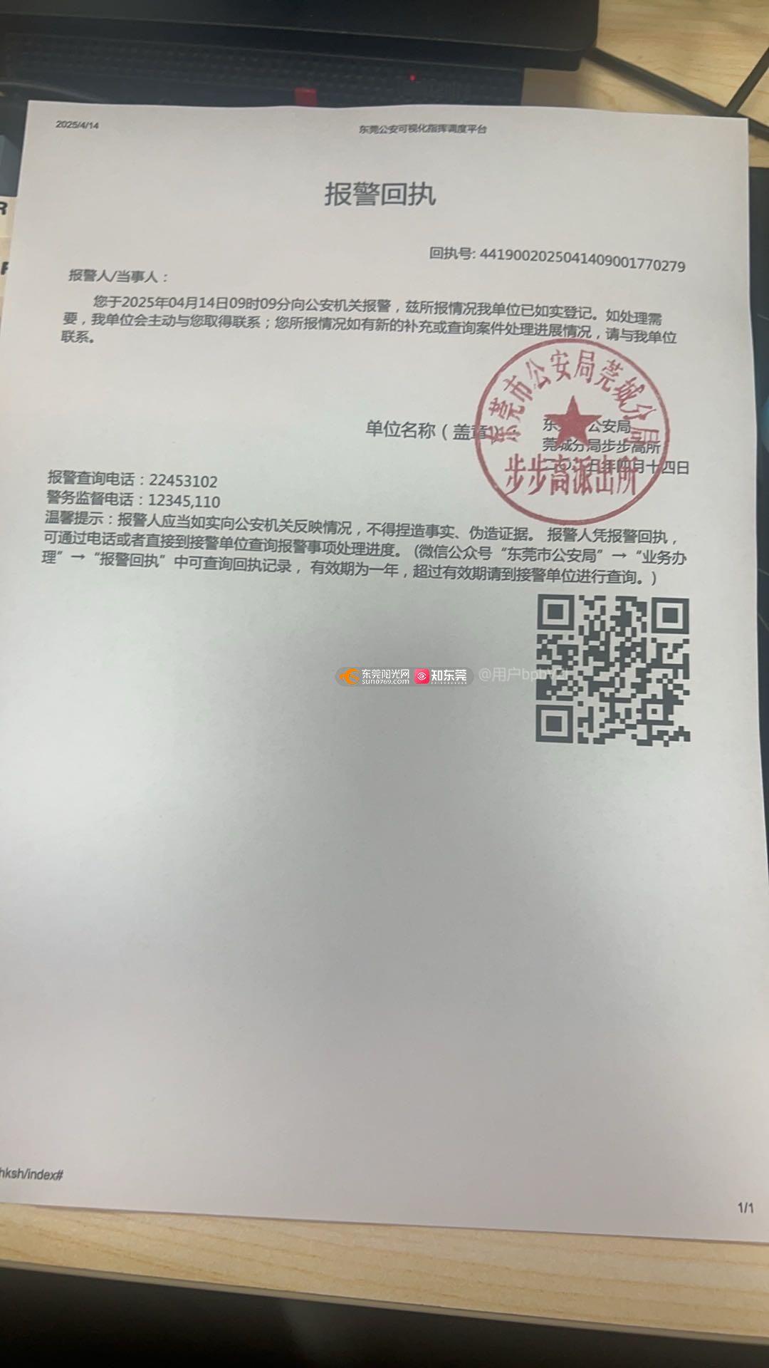 莞城公安分局工作人员已于4月19日上午通过电话向您反馈有关情况,您表示清楚和明白。若您有其它疑问,可致电莞城公安分局步步高派出所电话22453102进行咨询。感谢您对我们工作的理解和支持!