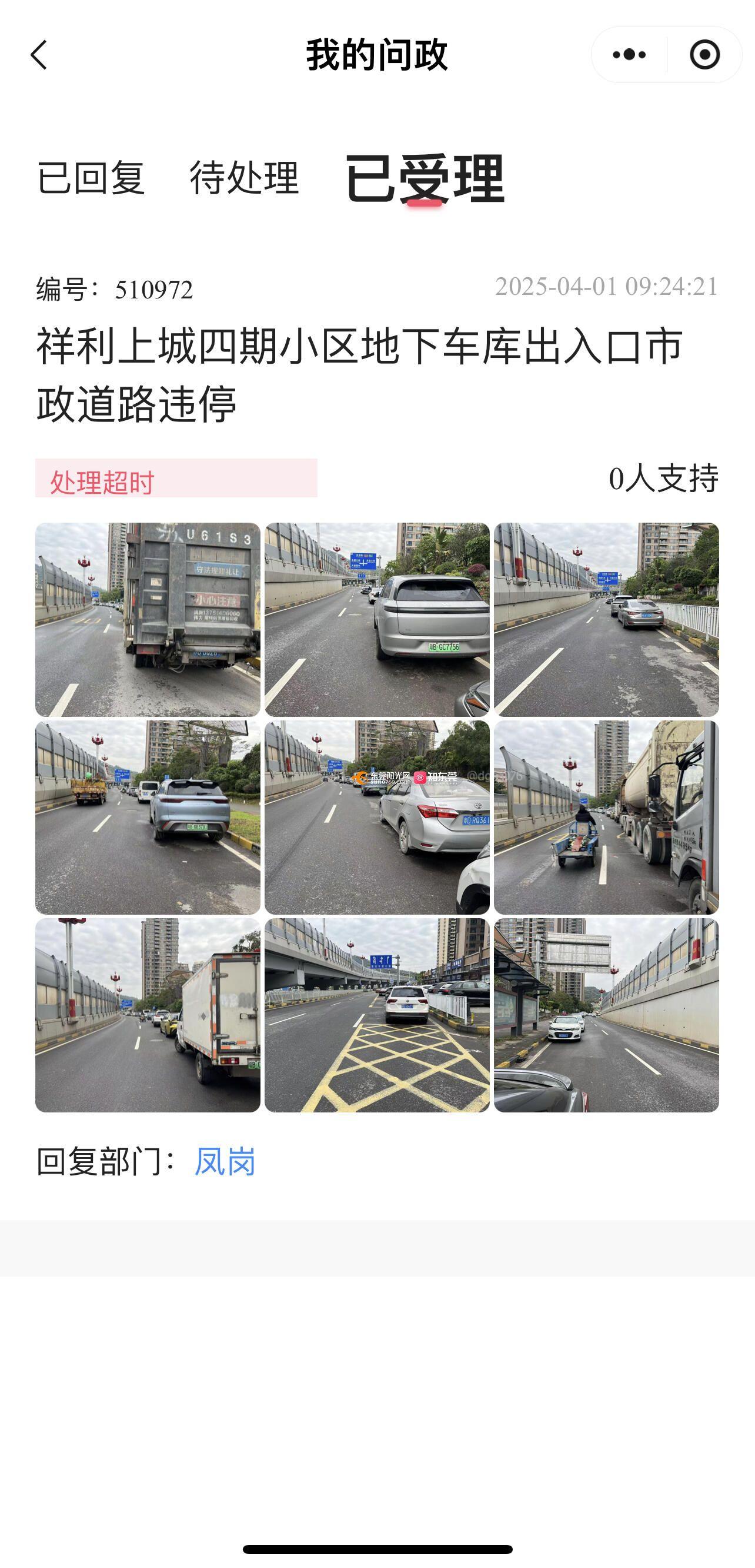 尊敬的市民,您好!您反映的问题已收悉,现回复如下:收到反映的情况后,我们于2025-04-24 15:04:57对诉求进行办理。经了解,由于汽车保有量持续增长,停车场地较少的现状,加之停车围合管理,部分市民贪图方便将车辆停放在市政道路上。为进一步加强道路交通秩序管理,规范车辆停放秩序,凤岗交警已安排铁骑警员到反映路段进行现场查处和劝导。下一步,将持续加强路面巡逻管控查处力度,引导群众规范文明停车、自觉遵守道路交通法律法规,减少违停的发生。同时,市民若发现车辆违停,可通过东莞随手拍小程序举报,将第一时间进行处置。