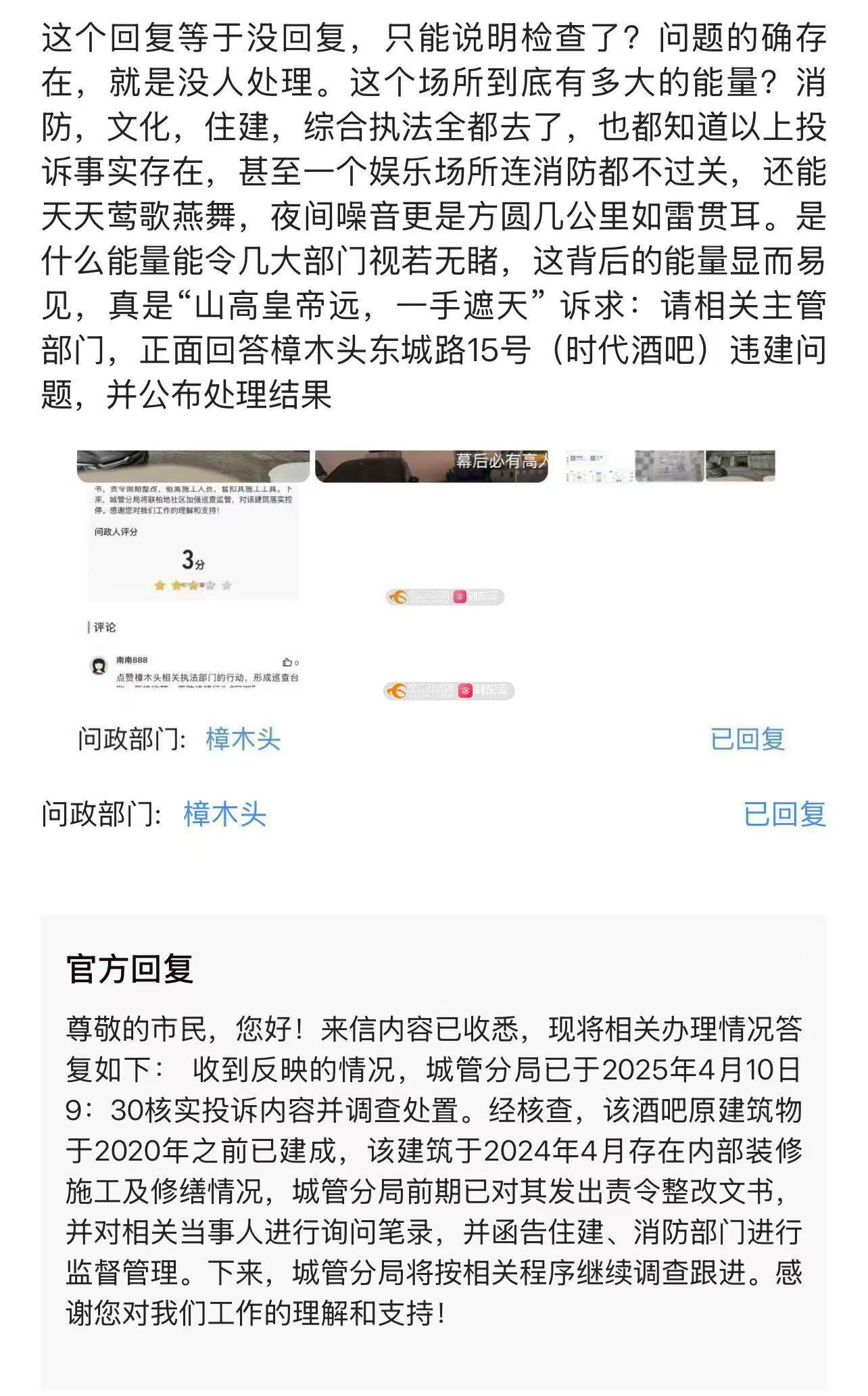 投诉100次樟木头东城路15号(时代酒吧)违建问题,樟木头政府对各部门的不作为,互相推诿没有监管吗?