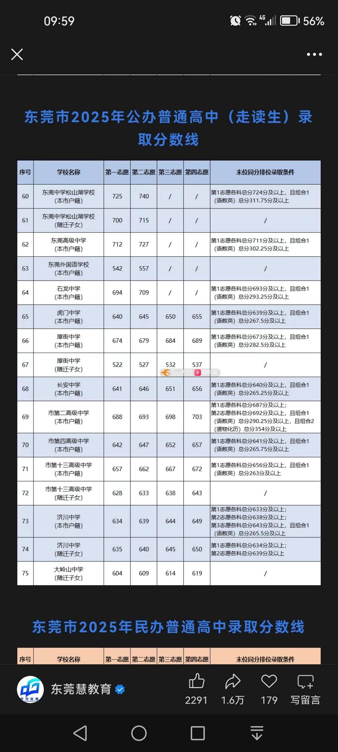 尊敬的市民,您好!您反映的问题已收悉,现回复如下:您好,2025年4月12日,市教育局公布2025年东莞市高中阶段学校招生计划中,已明确公布东莞市内各共公、民办普通高中以及中职、技校的招生计划。根据我市中考招生录取政策,本市户籍学生和随迁子女学生是“不同赛道”竞争、分别划线录取。本市户籍学生竞争面向报考学校公布的本市户籍招生名额,随迁子女学生竞争面向报考学校公布的随迁子女招生名额。本市户籍学生和随迁子女学生分别按两类学生的分数和志愿情况按分数从高到低择优录取,因此会出现同一所学校招收本市户籍学生和招收随迁子女学生分数不一致的现象。本市户籍学生录取分数线高于随迁子女学生的现象,主要是考生填报志愿不均衡造成,填报某中学的本市户籍学生人数较多、分数较高;而填报同一中学随迁子女学生人数相对较少、分数较低。在宿位分配时,不区分户籍,按照“高分者有宿位、低分者无宿位(走读)”原则。感谢您对我们工作的支持!