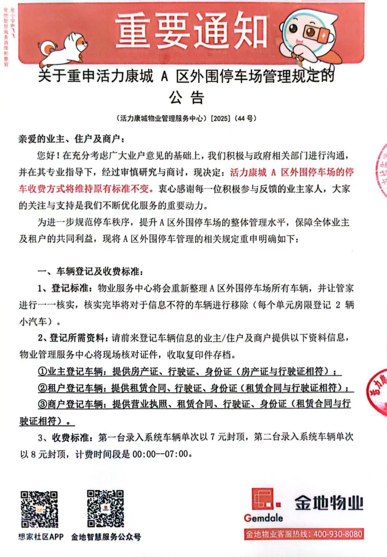 尊敬的市民,您好!您反映的问题南城房管所已收悉,现回复如下:收到投诉事项后,经了解,为活力康城小区提供物业服务的是东莞市宏远集团物业管理有限公司(以下简称“物业公司”),针对所反映情况,活力康城外围停车场属于全体业主共有,根据《东莞市物业管理条例》第十条第十二款 有关共有和共同管理权利的其他重大事项由业主共同决定,业主共同决定事项应当由专有部分面积占比三分之二以上的业主且人数占比三分之二以上的业主参与表决,并应当经参与表决专有部分面积过半数的业主且参与表决人数过半数的业主同意。活力康城小区共有停车场收费方式及相关管理内容有所变动,应由小区业主委员会组织开展业主大会进行表决,请市民知悉。 我所工作人员已要求物业公司加强服务意识,积极做好解释说明工作,继续按照相关要求做好小区管理工作。如有疑问,请联系南城房地产管理所,联系电话:23297682。感谢您对我们工作的理解和支持!