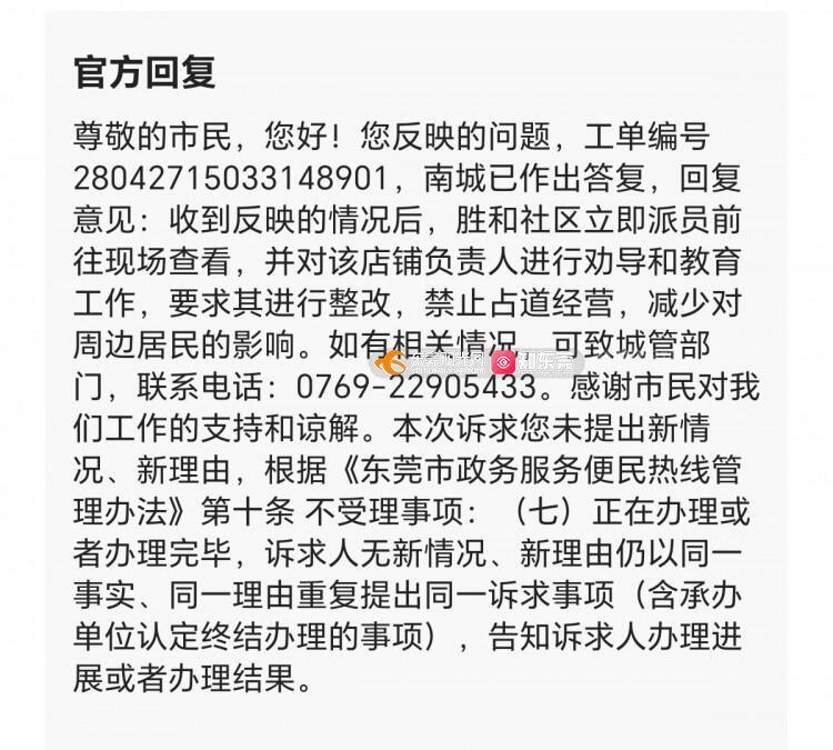 尊敬的市民,您好!您反映的问题已收悉,现回复如下:收到反映的情况后,城管分局执法人员到现场进行核查。经查,该商铺占用的小区范围,属于物业范围,非市政道路。根据《城市道路管理条例》的相关规定,分局对商铺超出用地红线范围占用市政道路的行为进行查处。另外,房管所已要求米兰雅居小区物业公司及时劝导和督促小区林兴潮汕菜大排档不得占用小区用地红线范围内的位置经营。感谢您对我们工作的理解和支持!