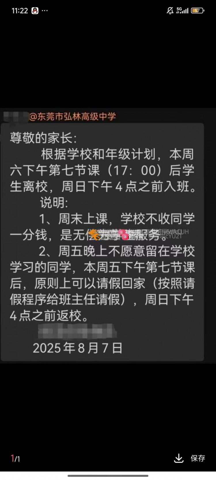 尊敬的市民,您好。来件已收悉,南城教育管理中心已安排工作人员到弘林高级中学了解相关情况,现回复如下: 据学校反馈,该校自2025年3月14日起已全面推行周末双休政策,周末(周六、周日)不组织任何形式的集体补课或强制自习。学生可自愿选择留校自习,但需严格遵守“自主申请、家长同意”原则,在学生与家长达成一致意见的情况下,该校为学生开通自愿留校自习的平台,为愿意留校自习的同学在学校提供学习场所。 我中心已要求弘林高级中学不得强制或变相强制学生周末留校学习。在严格遵守办学规范要求的同时,对确有特殊情况,家长、学生提出需周末延迟离校、提前返校的学生,学校应在周末开放教室、图书馆、宿舍、运动场等场所,供有需要的学生留校自习或体育锻炼,但不能组织统一补课。如仍有疑问,可致电弘林高级中学电话0769-22883985进行反映。