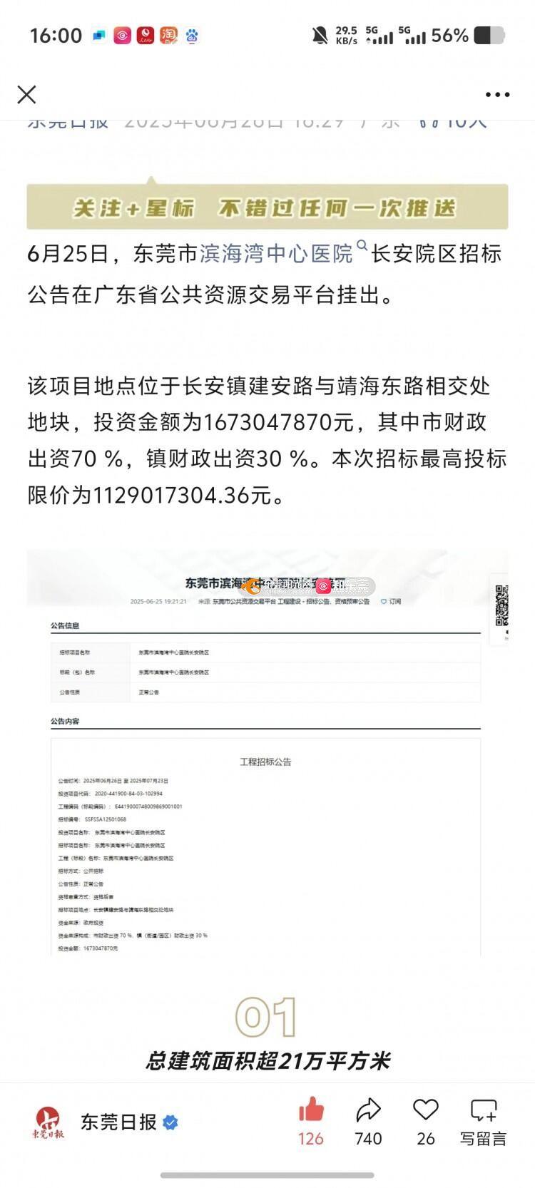作为长安居民,了解到附近40分钟车程内都没公立综合医院,而长安这边人口众多,广大长安群众都很关注滨海湾中心医院的进展。7月份得知这个医院正在招标,预计7.23开工,但现在一个月过去了,为何没看到施工动向呢?是否已经完成招标,实际开工时间会是啥时候呢?