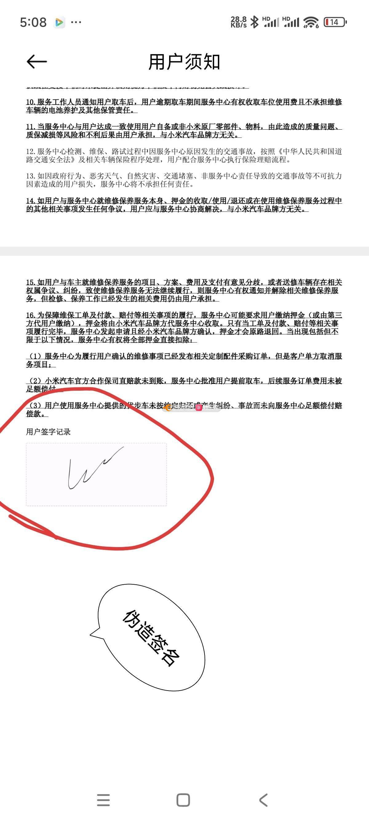1.对投诉编号“535801”处理结果不满意 ,应该从重处罚,对涉事商家罚款,起到警示作用。理由如下:1.商家并非“时间紧急”未告知,而是刻意隐瞒,拆车时间是下午15.15分前(附照片凭证),维修工单推送是下午18.03分(附工单凭证),当天工作人员解释,是给我推送了工单,当时工单根本无推送,说太忙了,忘了告诉我,为何维修中途不告知我?且我走进维修间不低于2次,为什么中途不告知我?这是刻意隐瞒,且充满欺骗。2.APP推送的工单,售后中心伪造签名,本人从未签署过。这又是一个欺骗和违规(附图) 新的投诉:1.小米汽车销售服务中心东莞寮步汽车城店(工商主体:东莞市标睿恒驰汽车有限公司)接连违反消费者保护法等相关规定,消费者多次要求提供修车记录,检查工单,包括详细的维修记录,故障原因描述,维修方案,维修时长等,商家通通拒绝提供,商家是否违反:家用汽车产品修理更换退货责任规定,第十七条规定?还违背消费者保护法等相关规定。 2.本车从该店维修完后,间隔几天8.27日,刹车系统异响,且至9.10为止刹车异响无法消除,小米售后中心给出“正常”结论,让其给对应的凭证,或小米汽车刹车异响是“正常”不影响行驶安全的相关保证,论证他们所讲的“正常”至今未给,消费者合理怀疑,其目的是为了逃避《三包法》相关规定,制动系统和转向系统都出问题,怕消费者退换车的要求,而故意不给! 鉴于以上,商家无视法规,欺骗消费者,伪造签名,不履行商家的义务,无视消费者合理诉求,逃避责任,且再三违反相关规定的行为。 希望监督管理部门从重处罚,对相关企业罚款,对相关人员追责,保障消费者合理合法权益和诉求。