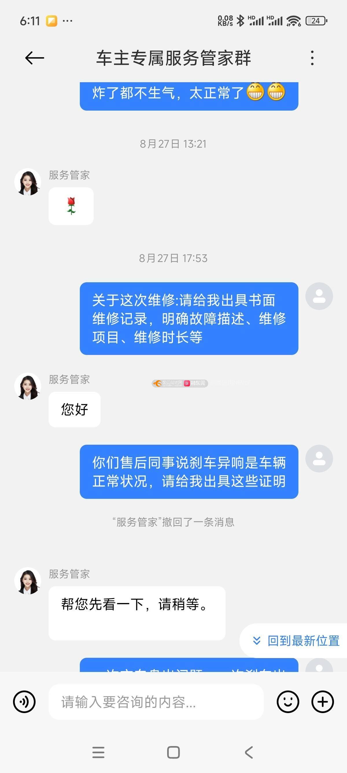 尊敬的市民,您好!您反映的问题已收悉,现回复如下: 东莞市市场监督管理局派出执法人员到被诉主体进行现场检查,其能提供《营业执照》以供检查。经查询,该局曾于9月1日收到您反映未告知维修事项的同一问题,该局于9月8日通过回复您相关处理情况。经调查,对于您反映被诉主体未提供修车记录和检查工单的问题,被诉主体表示维修工单和故障原因等信息,客户均可通过APP 查询,不存在隐瞒信息的情况。另对于您反映涉诉车辆刹车异响的问题,被诉主体供述其已安排师傅上门现场确认,现场确认刹盘车并无异物并将情况反馈至店端技术人员,其技术人员判断可能是高性能车在温度湿度差异情况下有异响,告知您到店进行全面排查。经多次沟通,您未能到店进行故障排查。 经核查,根据现有调查情况,该局暂未发现被诉主体存在未按约定提供服务的违法行为,不符合《市场监督管理行政处罚程序规定》第十九条规定的立案条件,暂不予立案处理。 另经调解,因被诉主体不接受您提出的诉求,双方分歧较大,根据《市场监督管理投诉举报处理暂行办法》第二十一条第一款第四项的规定,该局决定终止调解,建议您拨打法律援助热线12348咨询,并通过司法途径解决此消费纠纷。 执法人员对您反映的问题处理完毕后,已于2025年9月19日将上述情况通过回复了您,如有疑问,请联系东莞市市场监督管理局寮步分局,联系电话:18002700385。感谢您对我们工作的理解和支持!
