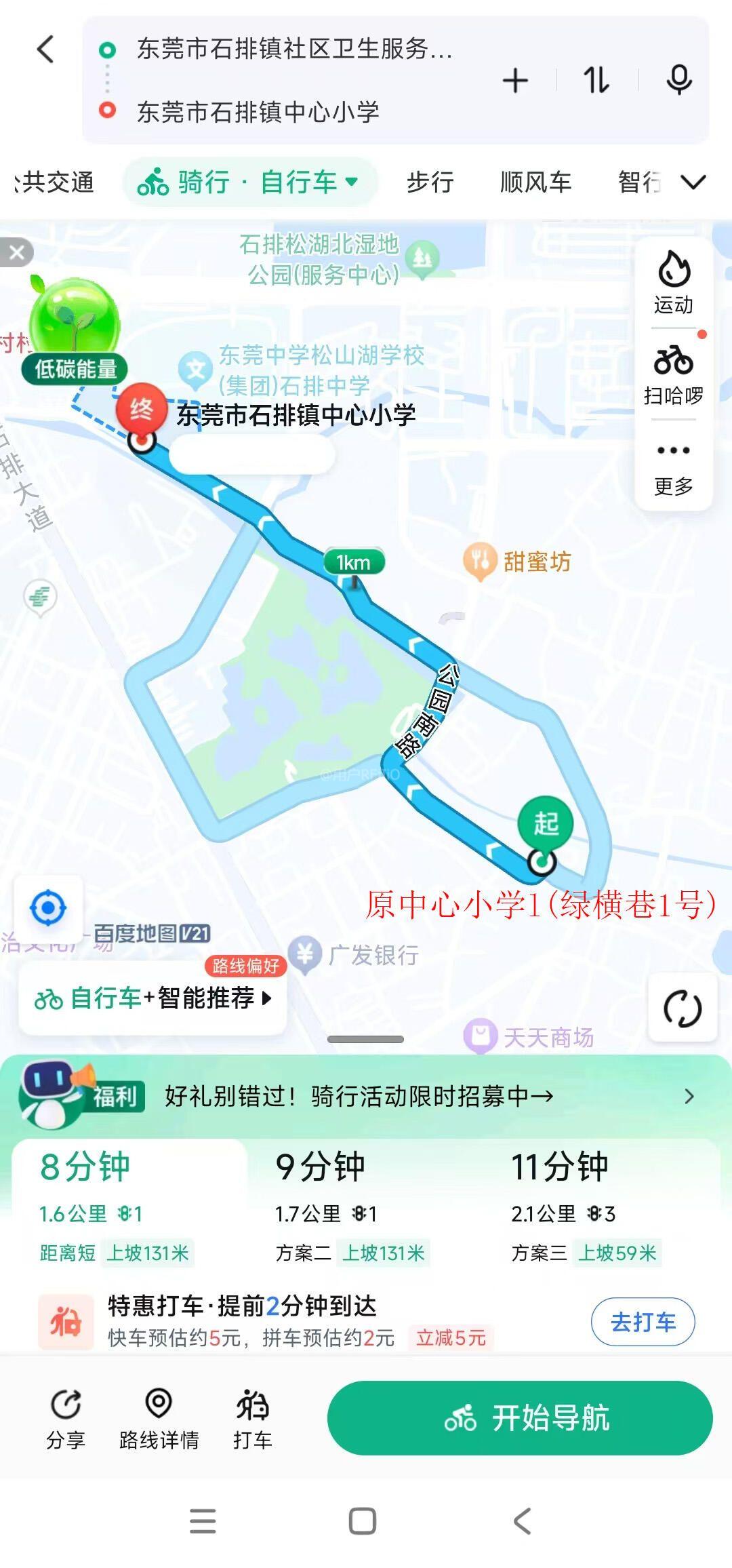 根据国家义务教育阶段的相关政策精神,"就近入学”是最基本、最明确的原则之一,旨在保障适龄儿童能够在合理半径范围内接受公平的义务教育,减轻学生上学路途负担,提升教育资源利用效率。然而,石排国际公馆自建成以来,其配套小学入学划分原定为云岗小学。这一安排在当时或许存在合理性。但自2022年起,石排中心小学整体从老校区(绿横巷1号)整体西迁至新址(约1.6公里外),情况已经发生了重大变化。根据实际测算,新石排中心小学距离石排国际公馆仅 1.2公里,而原定就读的云岗小学距离则是新校的两倍多。换句话说,从地理距离、交通便利性和学生通勤安全性来看,石排国际公馆的孩子就近入读新石排中心小学更加符合“就近入学”的政策精神。
