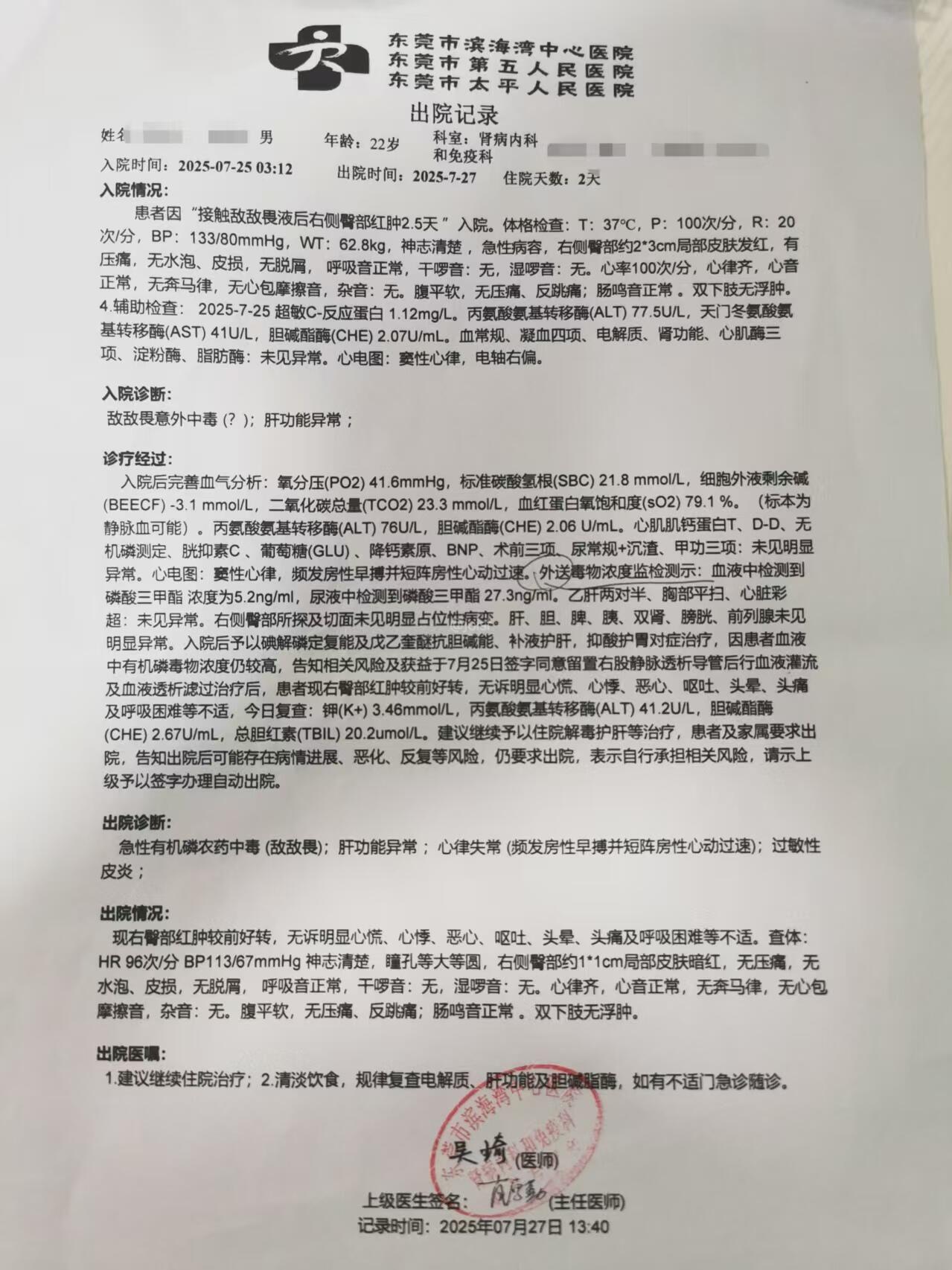 尊敬的市民,您好!您反映的问题,工单编号28081811514732701,市卫生健康局已作出答复,回复意见:尊敬的市民朋友,您好!您反映的问题已收悉,现回复如下:收到反映的情况后,工作人员于2025年8月18日19:04致电予您进行沟通、解释并致歉;并于8月20日11:52对诉求进行办理。经查,市滨海湾中心医院管床医生已协助您出示了相关材料证明,如您后续需要补充材料证明的,请与医院联系。我院已要求市滨海湾中心医院加强与患者和家属的沟通解释、协助工作,杜绝再次发生同类事件。给您造成的不便,我们深表歉意。如有疑问,请联系市滨海湾中心医院医患关系办公室,联系电话:85010290。感谢您对卫生健康工作的理解和支持!本次诉求您未提出新情况、新理由,根据《东莞市政务服务便民热线管理办法》第十条 不受理事项:(七)正在办理或者办理完毕,诉求人无新情况、新理由仍以同一事实、同一理由重复提出同一诉求事项(含承办单位认定终结办理的事项),告知诉求人办理进展或者办理结果。