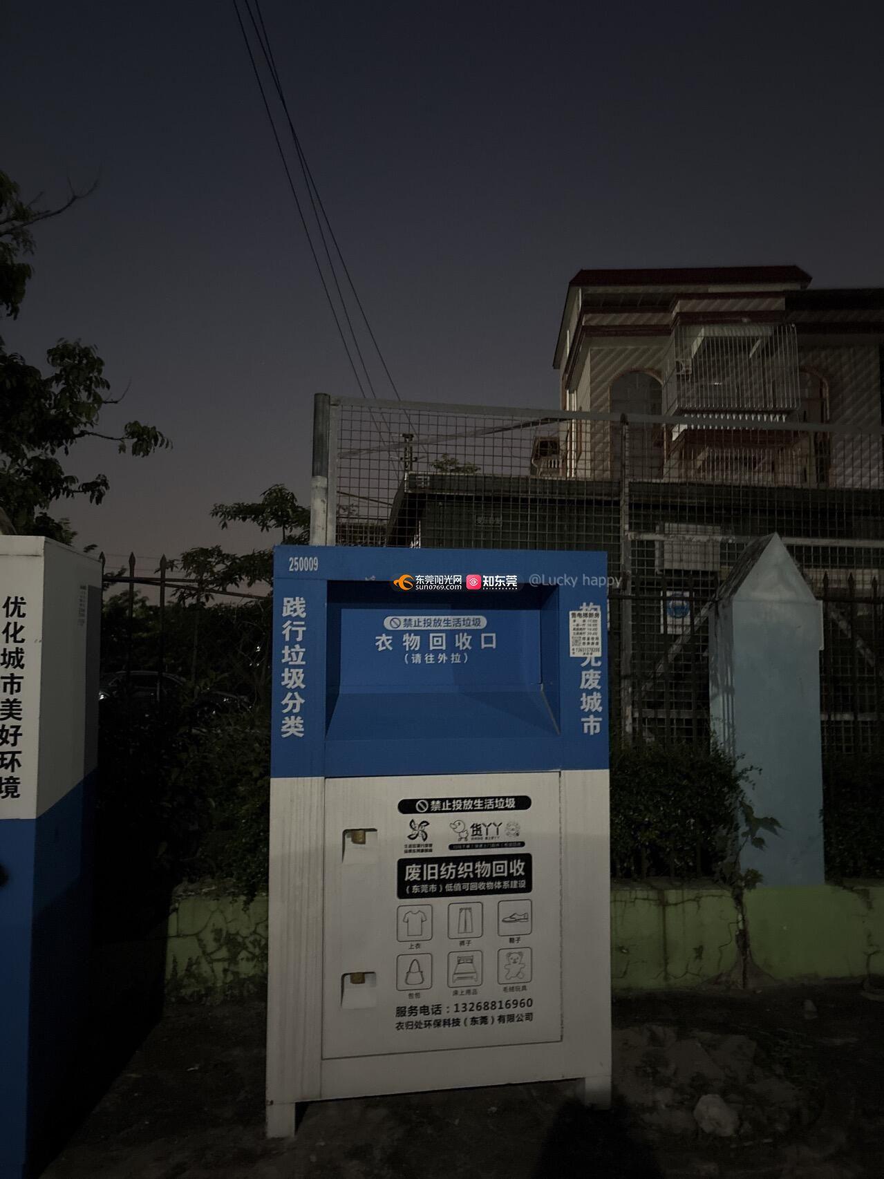 先锋村幼儿园 一只猫困在衣服回收箱里 只进不出