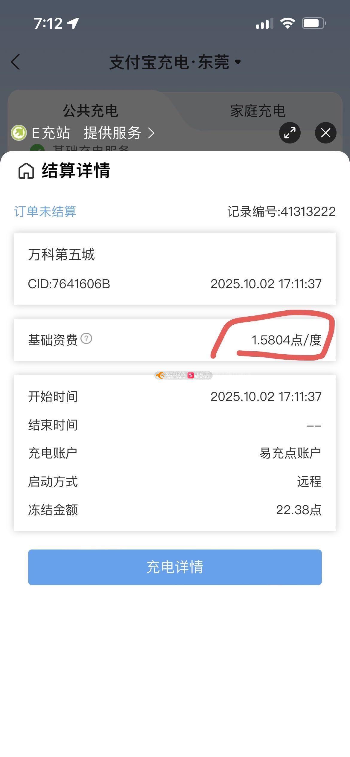 本人为东莞市高埗镇万科第五城业主,在小区公用充电桩充电,充电时扫码屏幕显示电费为0.75元/度,实际充电结束后结算费用为1.58元每度,存在收费不透明坑害业主行为,此外小区物业为业主花钱请来为业主服务的,为何引进比外面一般充电桩收费都高的第三方充电公司来坑业主?是否其中存在利益输送?