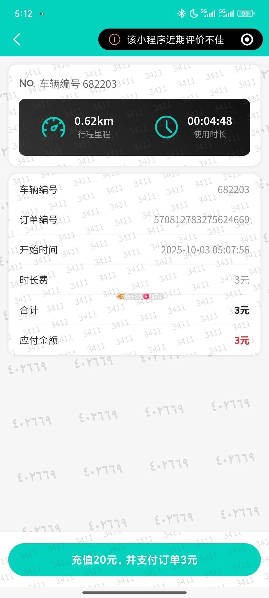 不管骑行了多久(我骑了一会会 三块)他要我充钱充20才可以付款 这。。。