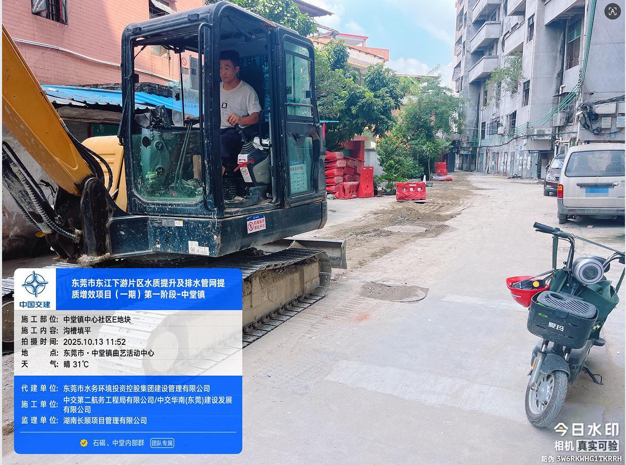 尊敬的市民,您好!您反映的问题已收悉,现回复如下: 收到反映的情况后,我们于2025年10月12日09:29电话与您取得联系,并对诉求进行办理。您反映问题的工程为东莞市水务环境投资控股集团建设管理有限公司负责代建管理的东莞市东江下游片区水质提升及排水管网提质增效项目一期第一阶段-中堂镇,施工单位为中交第二航务工程局有限公司。 经核实,施工单位已于10月13日对您反映的位置进行临时回填,预计2025年11月25日完成路面恢复工作。由此造成不便,敬请谅解。 2025年10月12日,工作人员致电告知您上述情况。如有疑问,欢迎致电水务环境集团24小时客服热线96968,感谢您对我们工作的理解和支持!