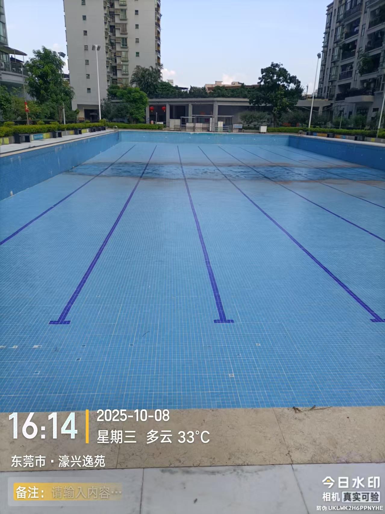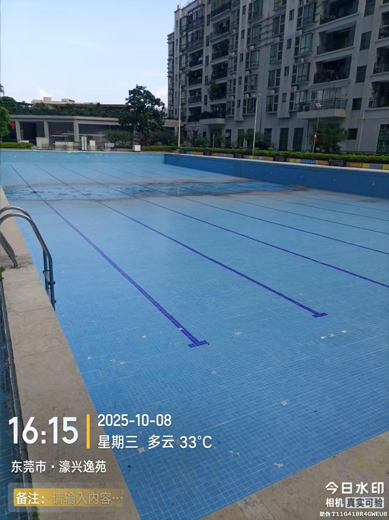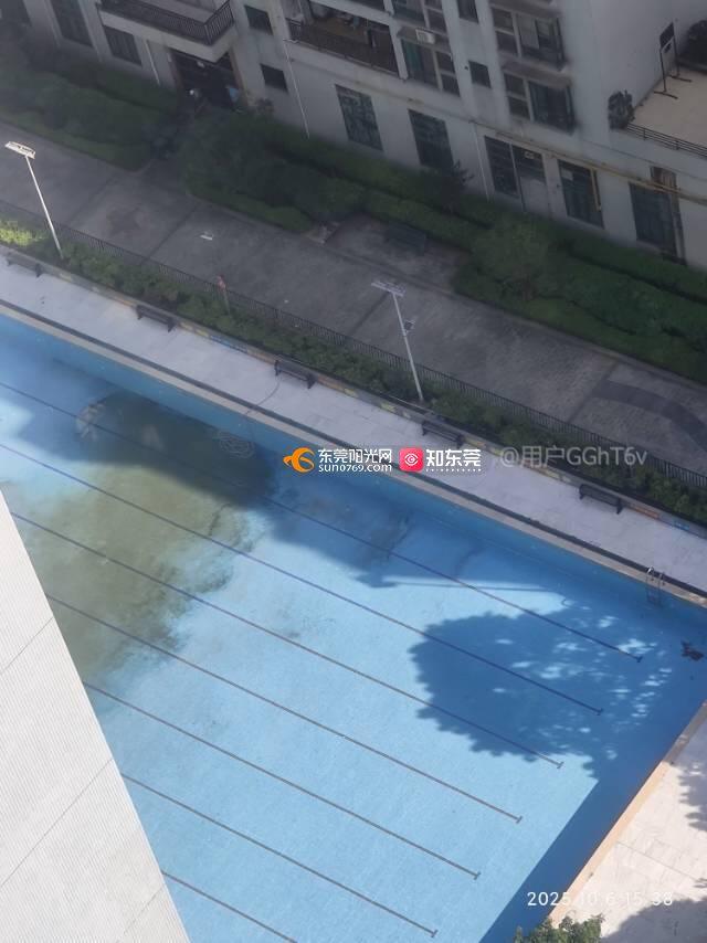 石龙镇,濠兴逸苑游泳池长期积水无人清理。存在蚊虫传播风险。