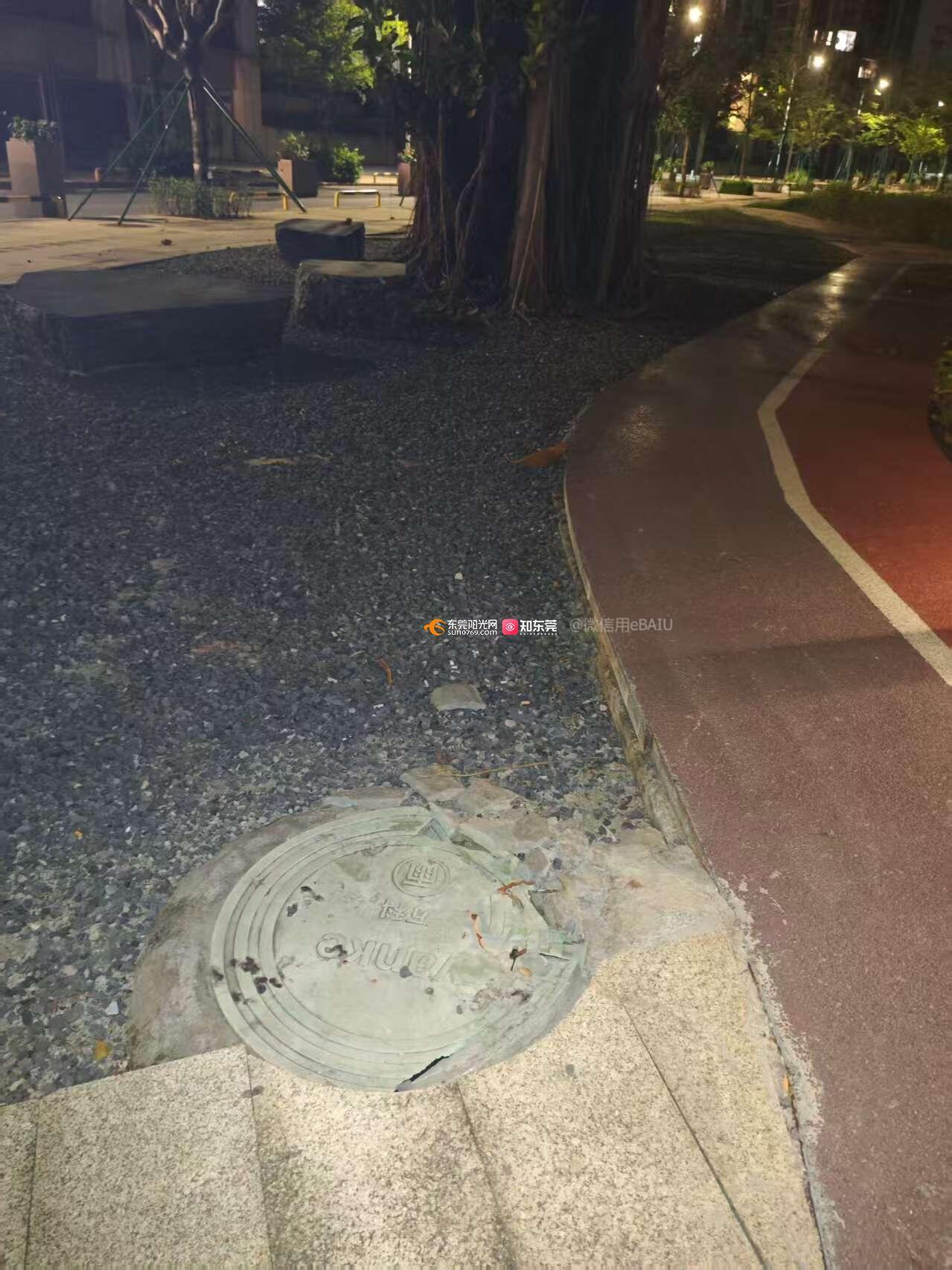 洪梅镇水岸公园井盖破损存在重大影患,请及时处理