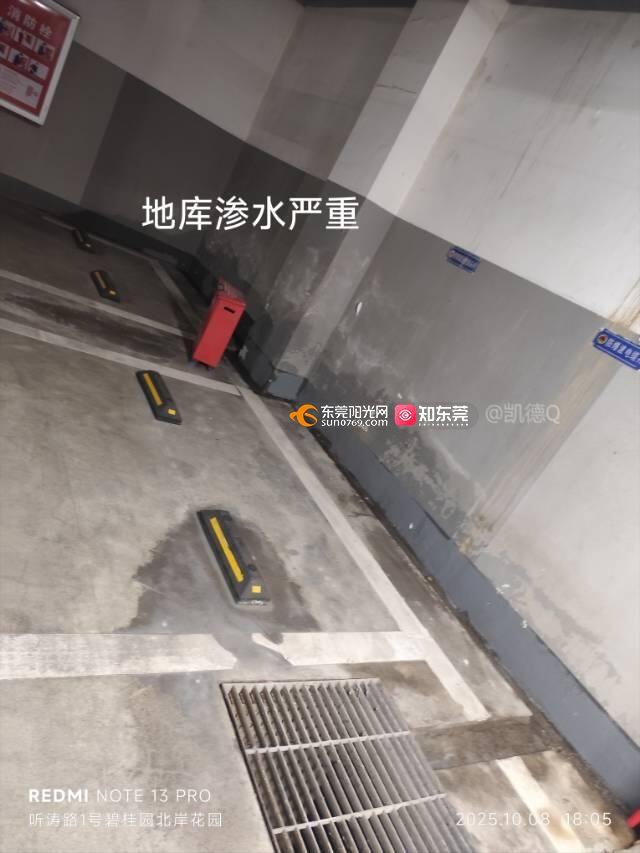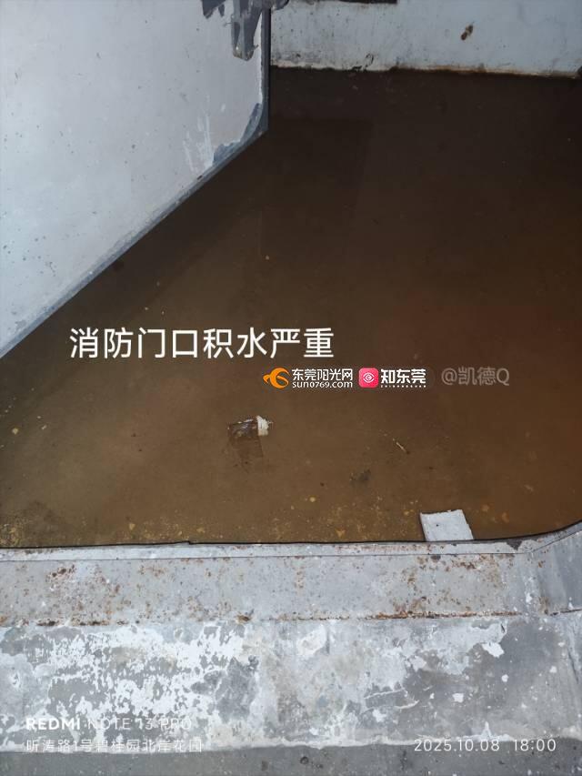 麻涌碧桂园北岸小区车库,消防门口,楼道好多处积水,赶快清理,积蚊虫