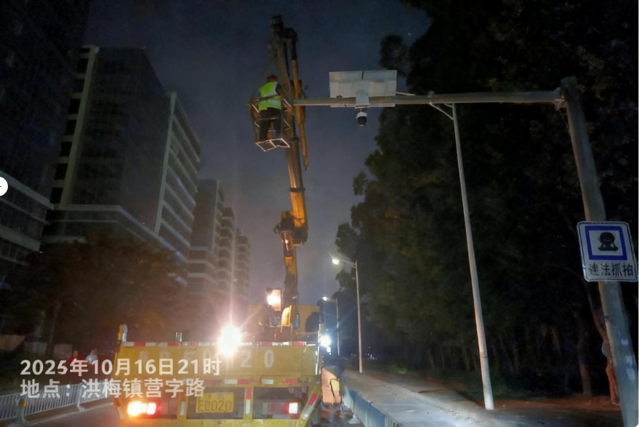 尊敬的市民,您好,关于您反映的问题已收悉,现回复如下:首先,感谢市民对我们交通设施管理工作的监督。接到反映的情况后,我大队联系设施管养单位到场检查,现已对该监控标识牌进行修复处理,相关的安全隐患已消除。如有疑问,请联系洪梅镇交管大队,联系电话:81336166。感谢您对我们工作的理解和支持!