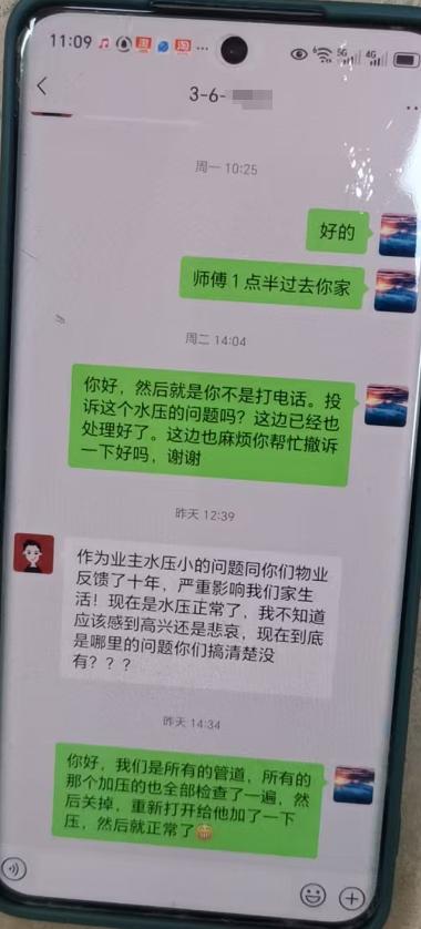 市民您好,您反映的情况已收到。据我所了解,物业公司在10月13日到市民家了解水压情况,并现场清洗了水龙头过滤网,市民也在场,没有发现水压不正常的情况。市民如有疑问可联系清溪房管所电话87318918。