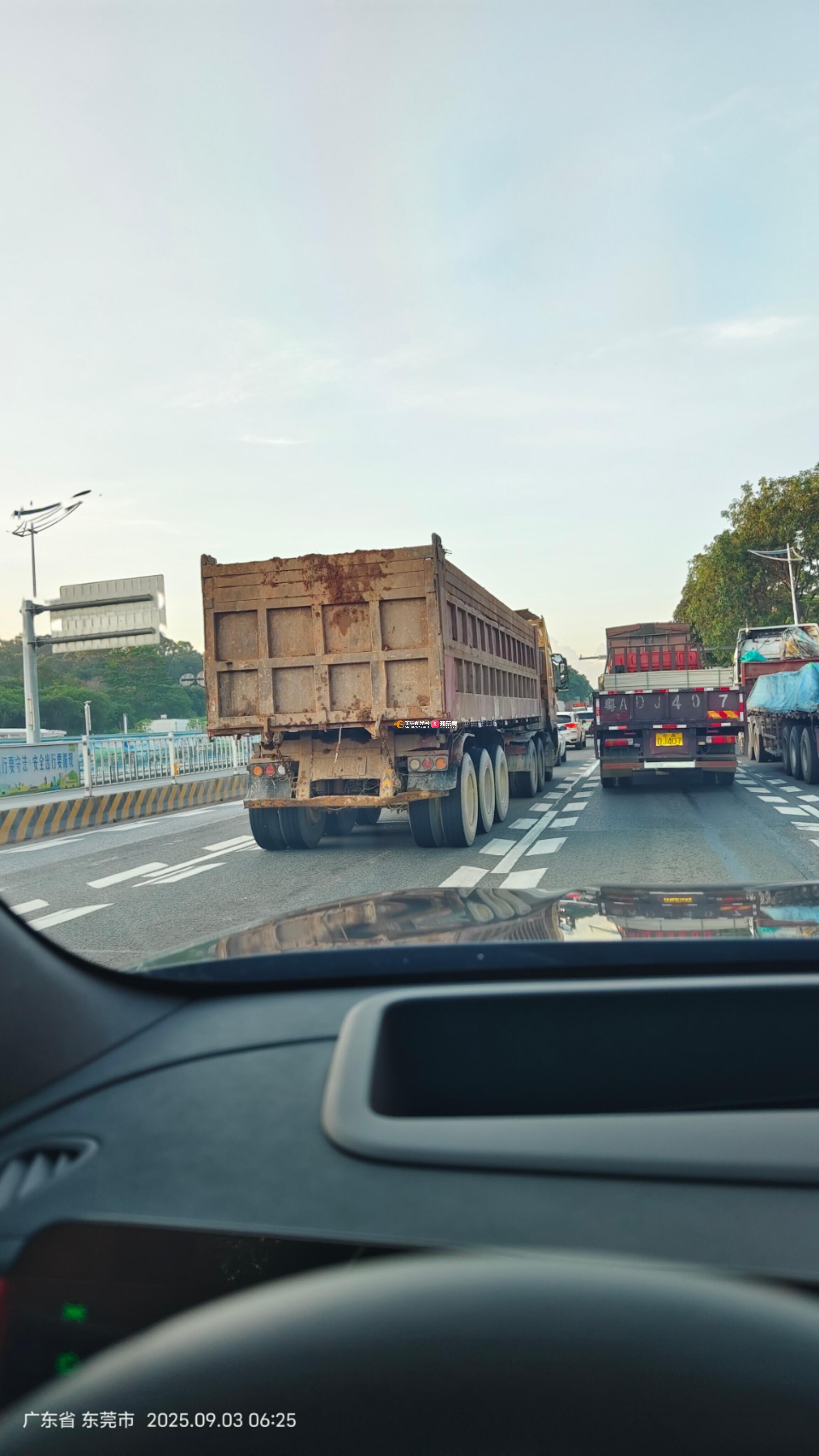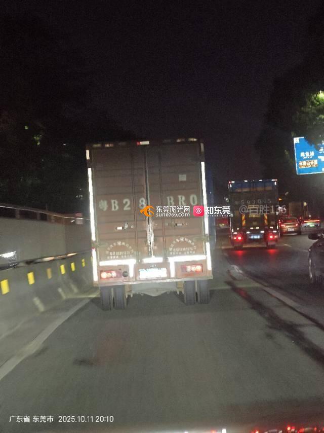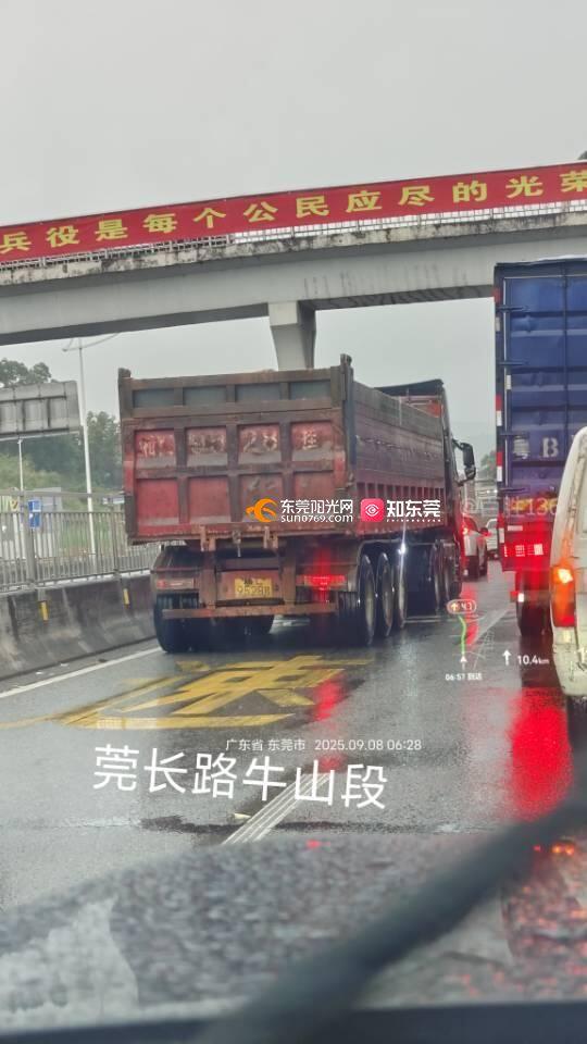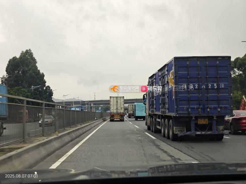 107国道同沙公园至长安段经常大货车随意变道,占用左侧超车道