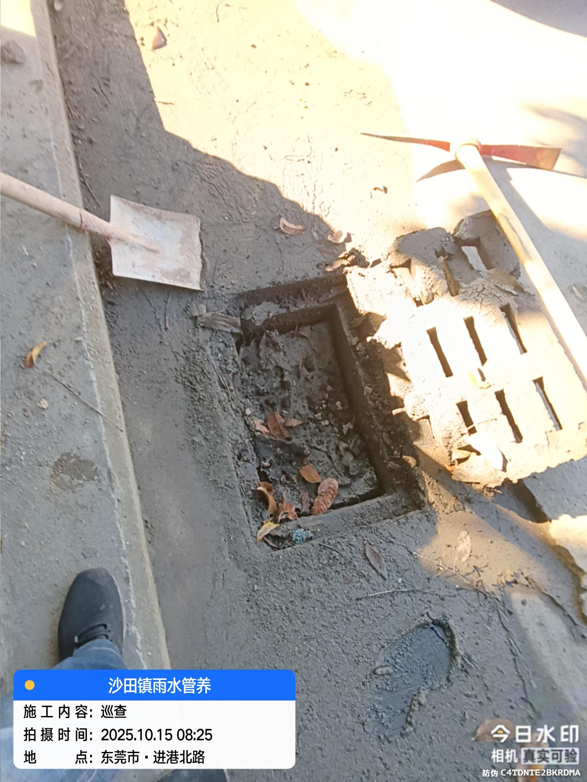 成田路与进港北路交叉位,路面下雨滞水不走,雨后积水积淤