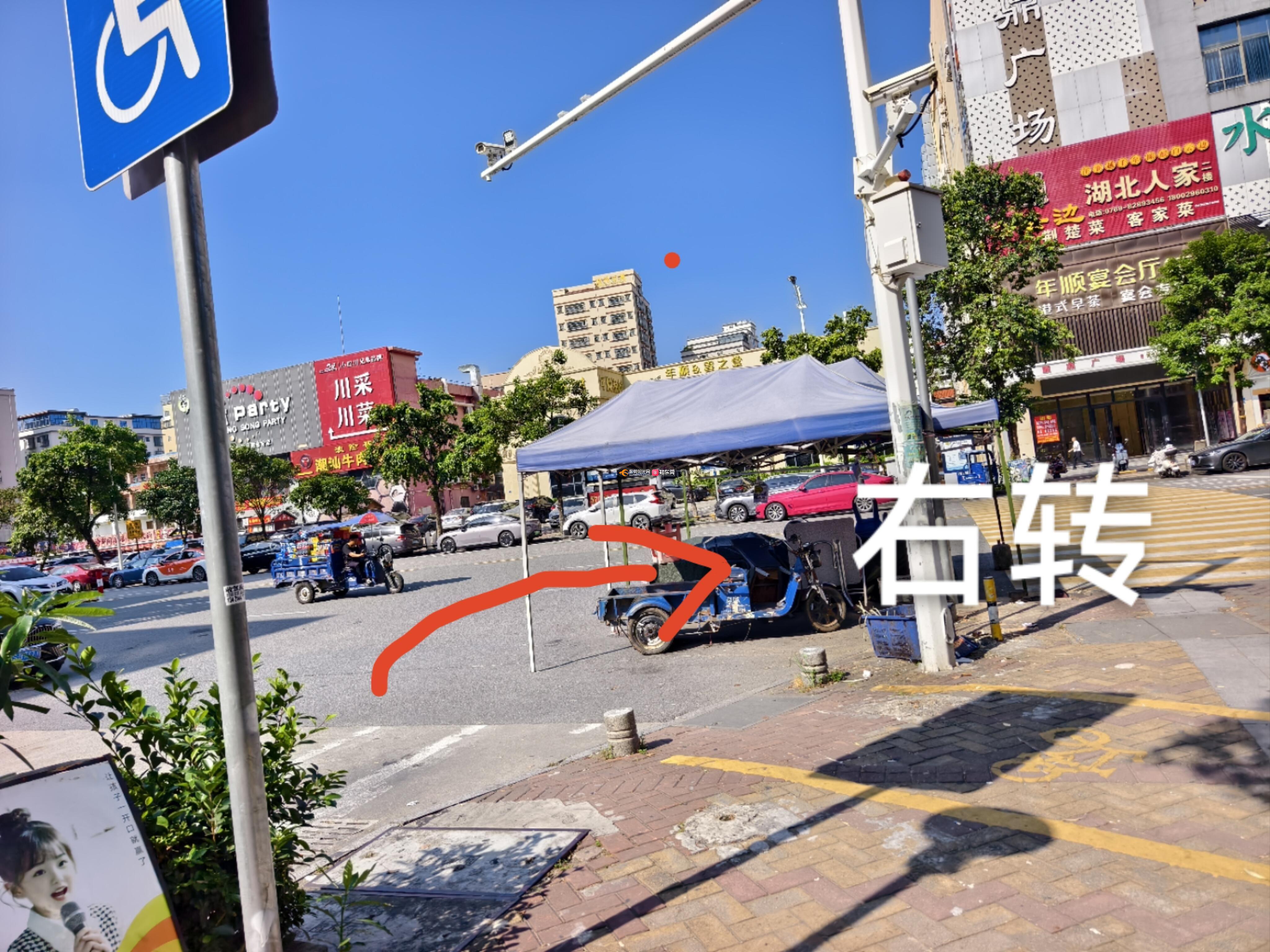 大岭山大华街出南一路口处人行道上一直有个棚子摆摊,占据车辆右转道路,严重影响行车和行人安全,希望相关部门进行管理。