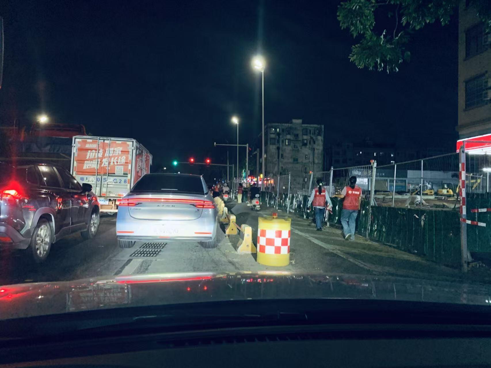 石大路与寮步金富路交叉路口,往茶山方向的红绿灯路口,规划三条直行道,一条左转道。最右车道之前虽被用石墩和水马隔了非机动车道,但仍然可以通过机动车。今年国庆节后,石墩和水马被人往外挪了。导致原先可以通过的机动车道无法通行,该路口堵车严重。从照片可以看出,非机动车道几乎是机动车道的两倍宽。 请交警部门安排人员将水马、石墩恢复。