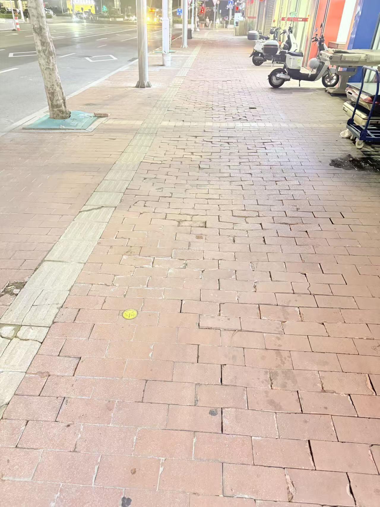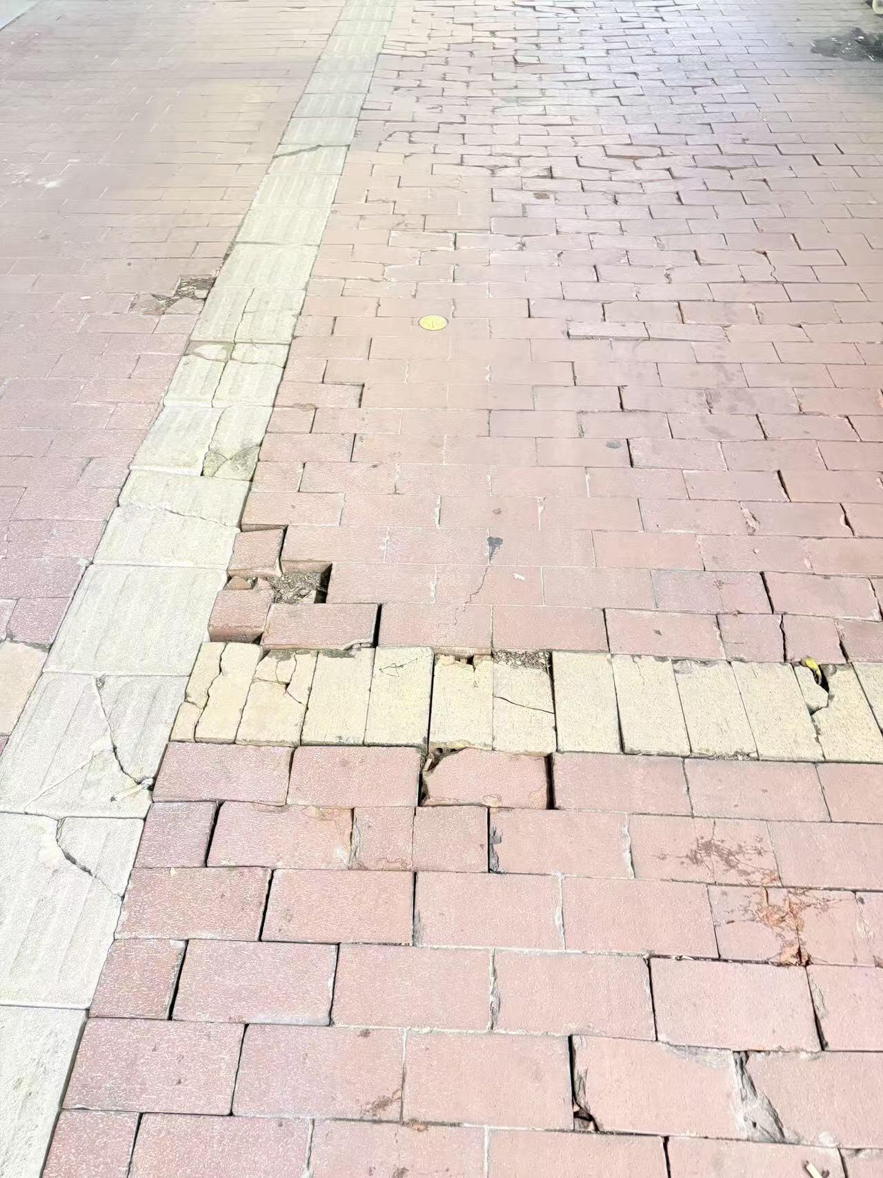 万江街道莞穗路万江段万高路人行自行车道用的红色小砖头没有任何水泥浇筑,整个路段两旁没有一段不松动,到处是松动弹出来脱落缺砖,还经常出现电动自行车行走红砖弹起造成人伤。才铺设几年就破损严重,跟当时选材有很大问题,作为市民我建议镇府移除使用水泥铺设大块地砖,参考莞穗路二手车市场到石美路段铺设大块地砖美观耐用!