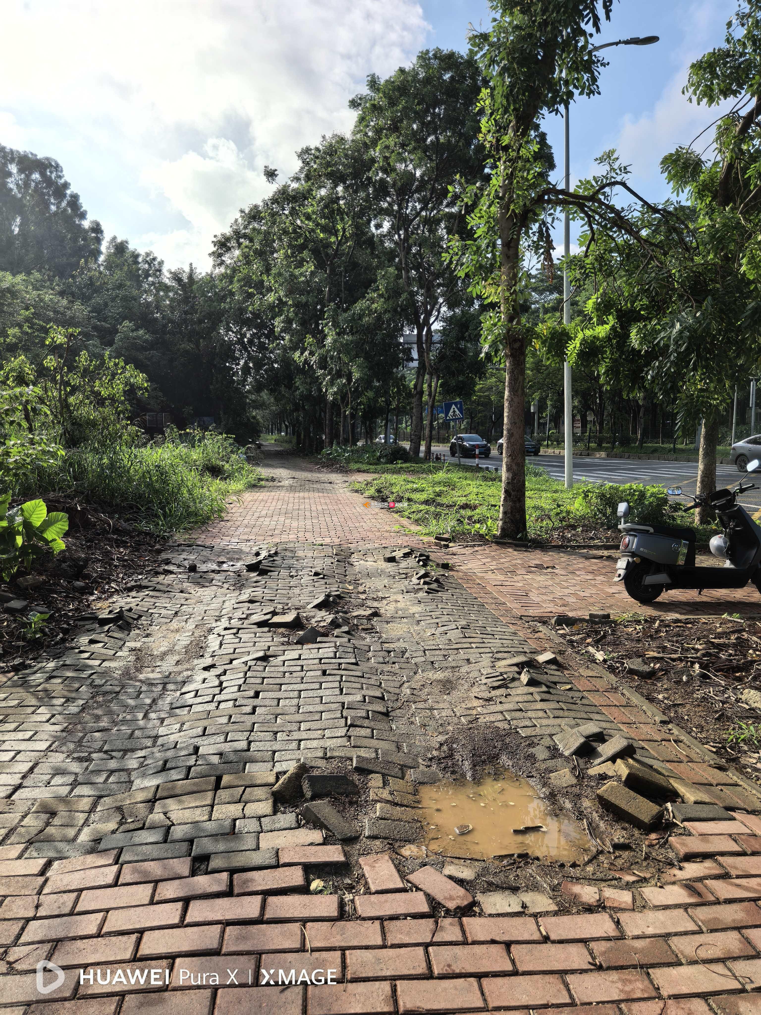 东莞清溪镇清溪大道非机动车道坑坑洼洼,破旧不堪问题