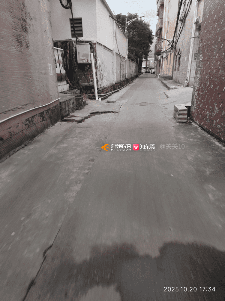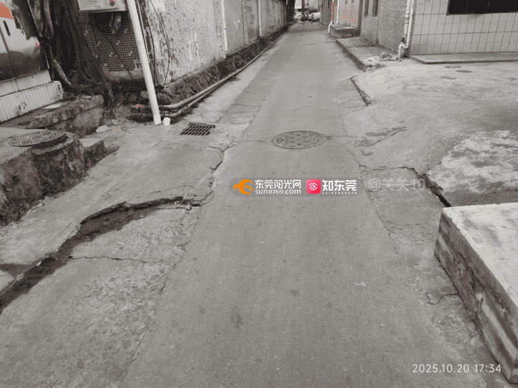 大龙村委会侧面。村道破损,下雨成水塘。无法行走。下雨后雨水没办法排走因为排水口比地面高,有个坎。影响市民行走也容易滋生蚊虫。特别容易积水。