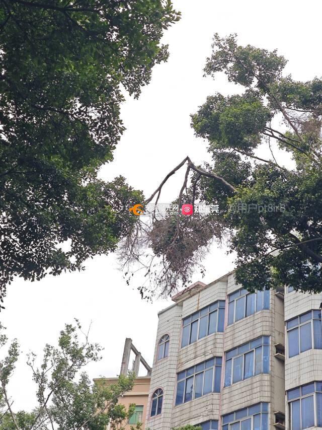 樟木头镇腾达路3号门前,树木断枝随时有掉下来的风险,麻烦相关部门尽快派人处理