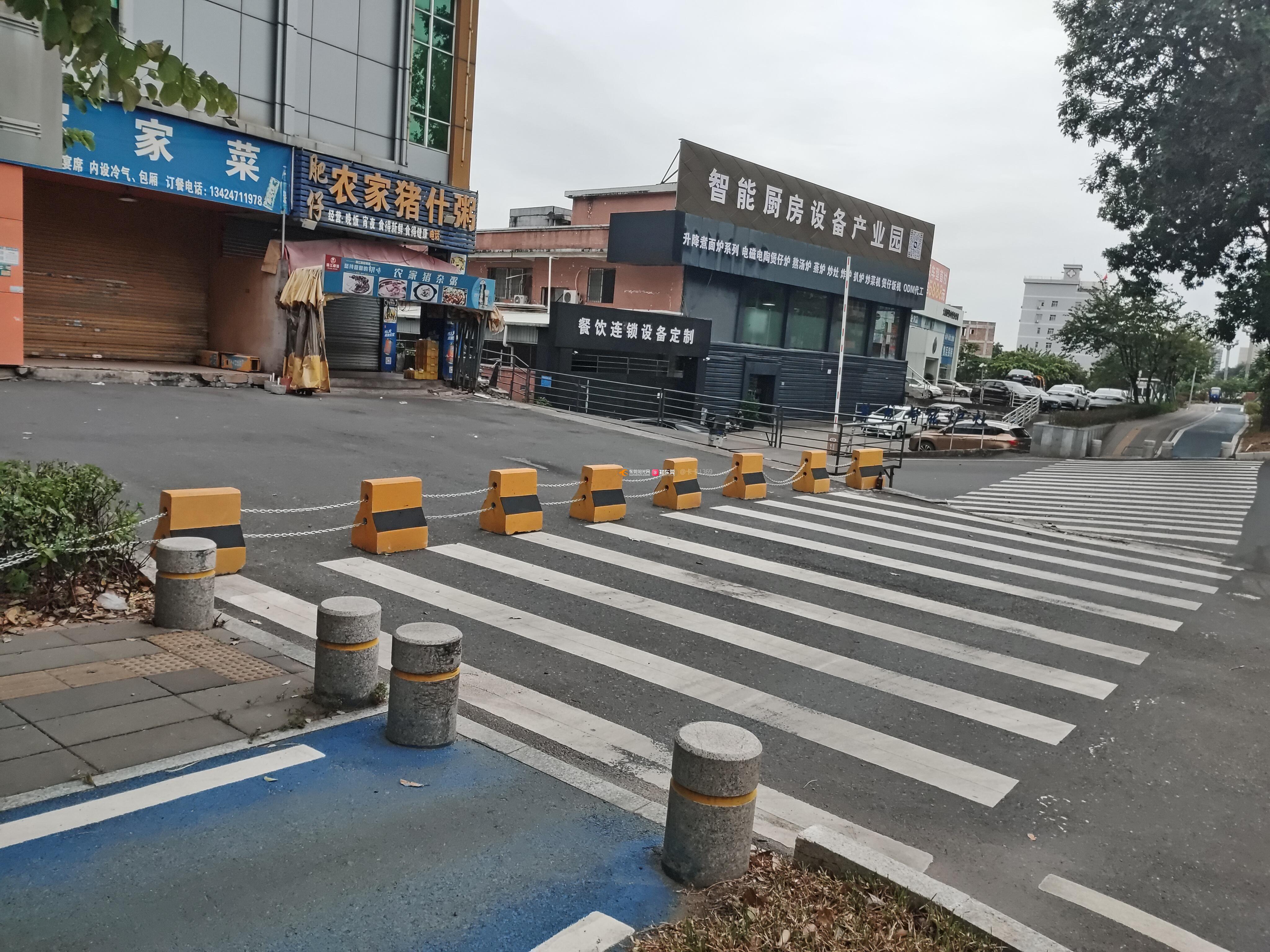 请问这里为什么用水泥块挡住人行道,还用上了铁链条,不用通过了吗?