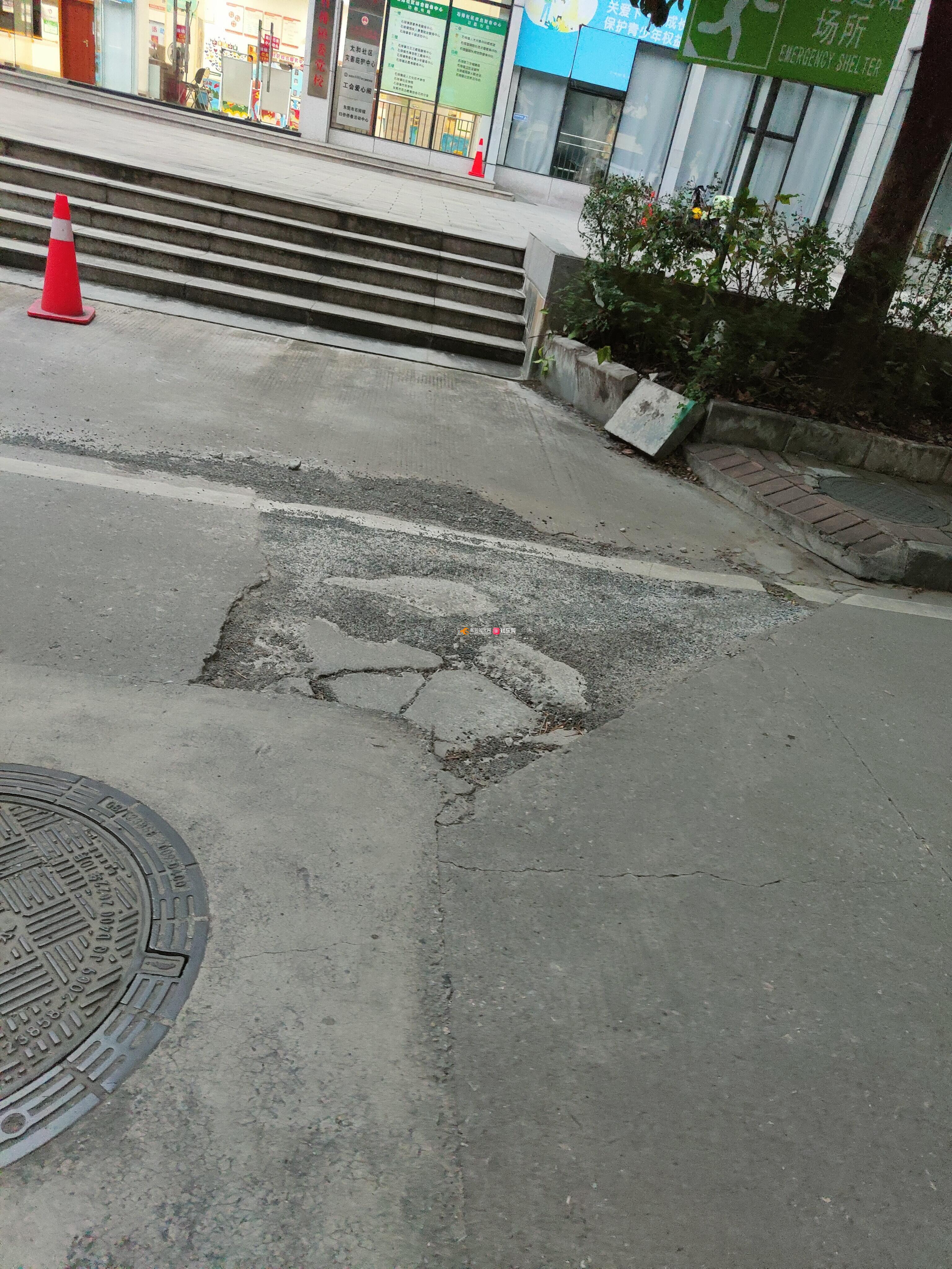 石排镇绿榕路社会服务中心门口,路面破损已有一个月,车辆及电动电行车过往,存在安全隐患!