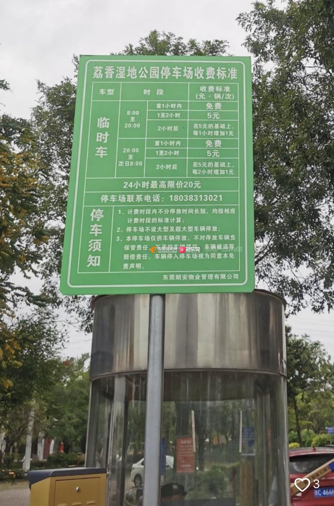 关于延长大朗荔香湿地公园免费停车时长的建议,希望延长至两小时