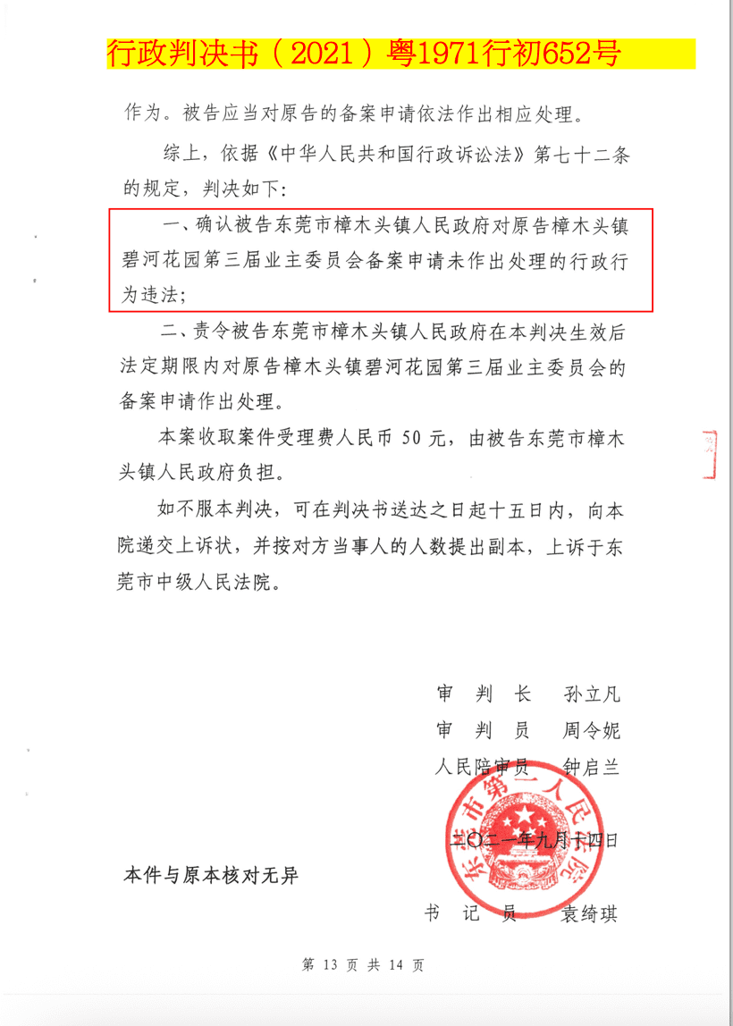 碧河人民跪请樟木头镇人民政府依法履行对业委会的备案处理
