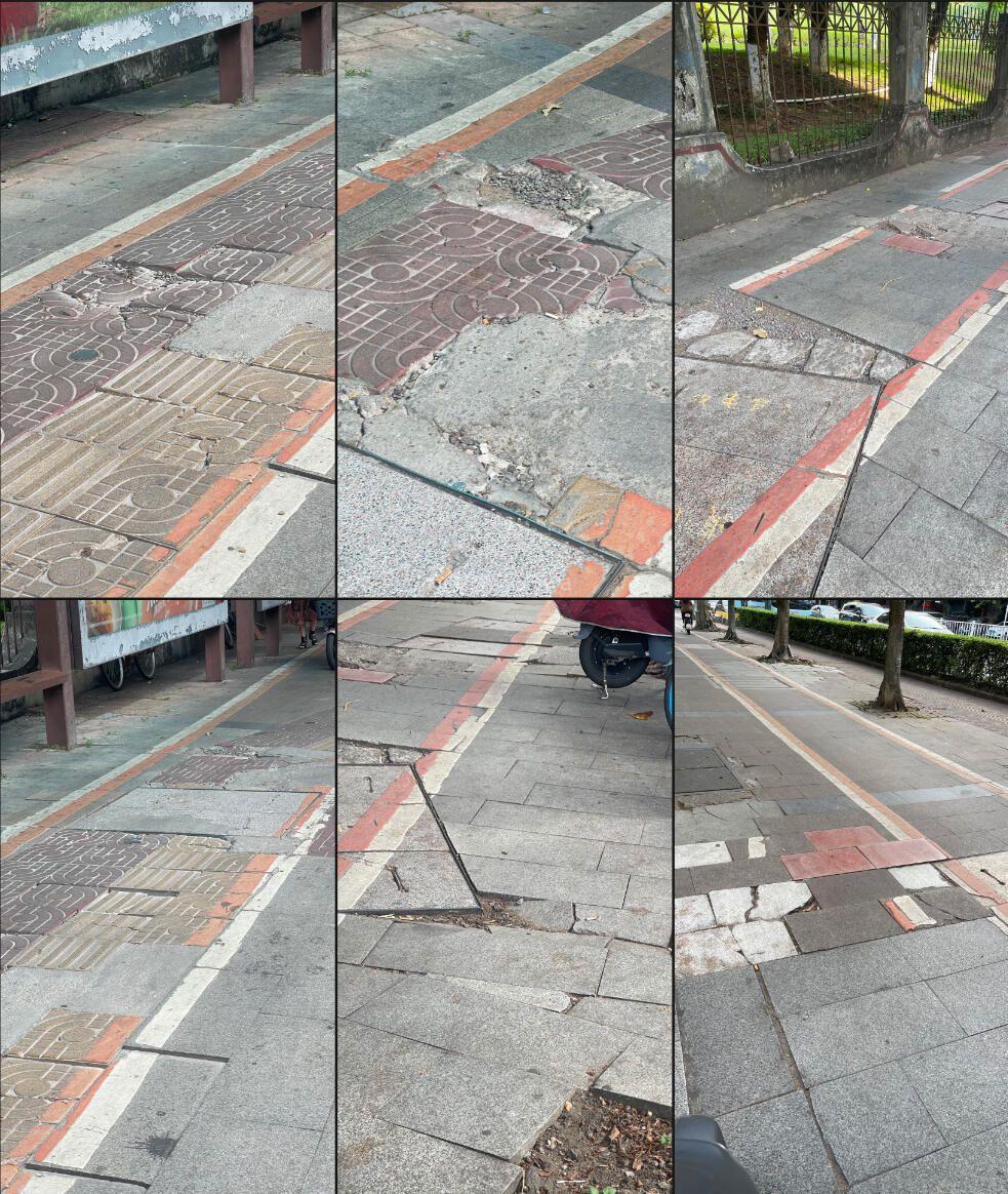 美霖幼儿园至人民公园东门自行车道破损,短短几百米,二三十块地砖已经损坏和翘起来,走上去摇摇晃晃破损,地面坑坑洼洼,这条路每天非常多小孩上下学,导致行人及非电动车走上去容易摔倒。 共反映了两条路面破损意见,只有一条象征性修复,然后还回复到这一条上面了。 路面砖如果没有一样的款式,至少用水泥把地面的坑填好吧? 希望领导能亲自开自行车从人民公园往美霖幼儿园走一走,及时修复。谢谢