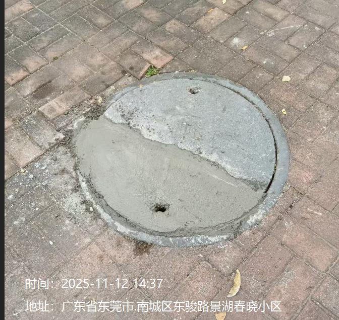 景湖春晓小区2号岗50米处下水道井盖破裂