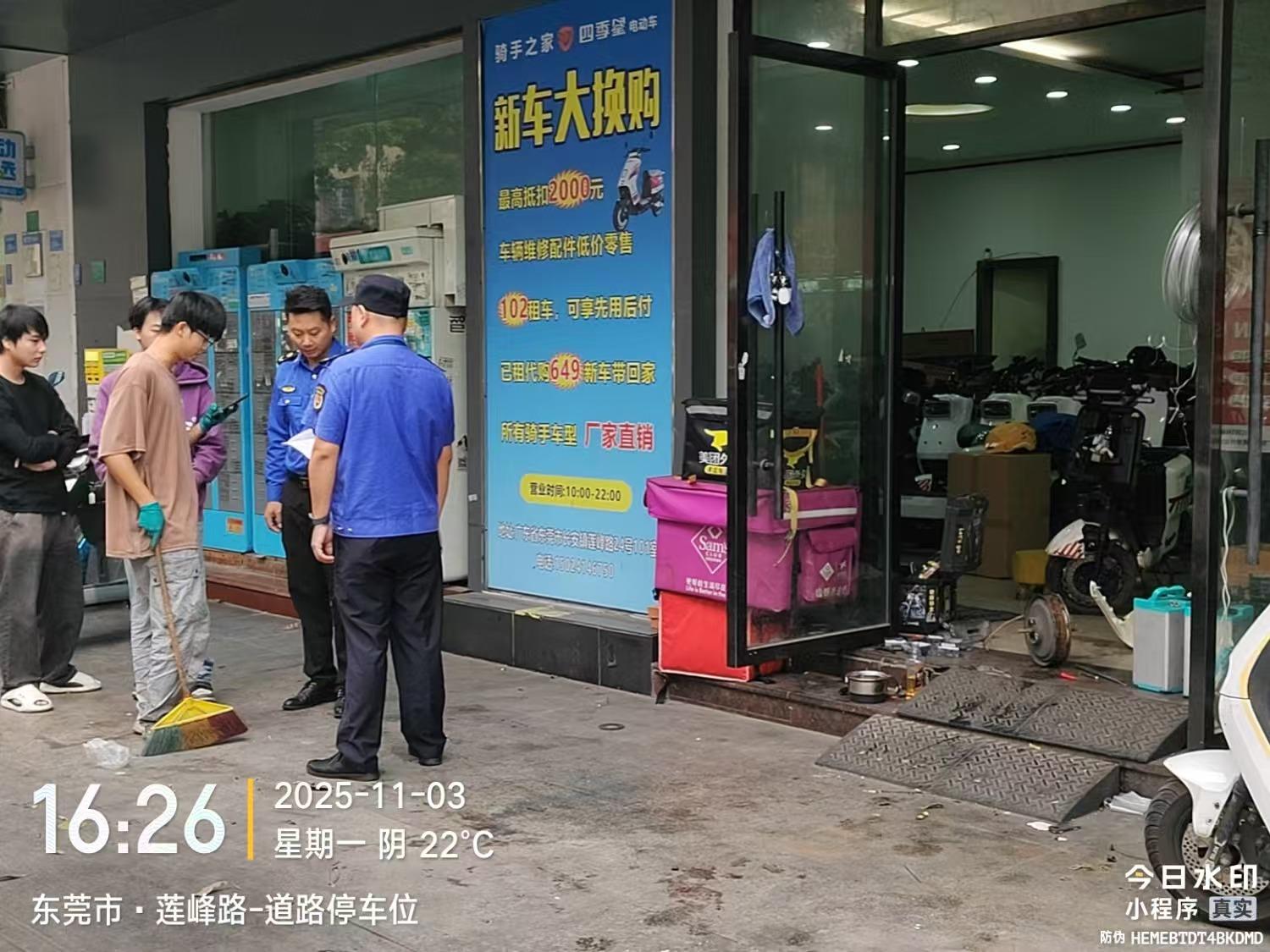 尊敬的市民,您好!您投诉的情况已收悉,现回复如下:接到投诉后,我分局执法人员于2025年11月3日16时05分到达投诉地点,经现场勘察,投诉情况属实。执法人员当场对店主宣传了占道经营的危害性,对其进行了批评教育和小微执法处罚,责令其立即整改,以免影响市民的正常生活和通行,现已整改完毕,执法人员拍照取证后离开。接下来,我分局执法人员将对此投诉情况进行跟踪监督。感谢您对我们工作的理解和支持!如有疑问,请联系东莞市城市管理和综合执法局长安分局,联系电话:81622227。