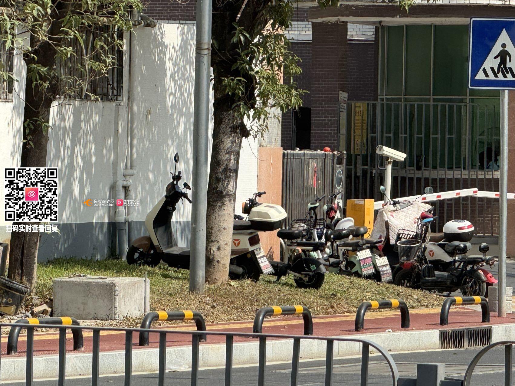金安包装工厂门口两侧绿化带存在机动车与非机动车违规停放问题