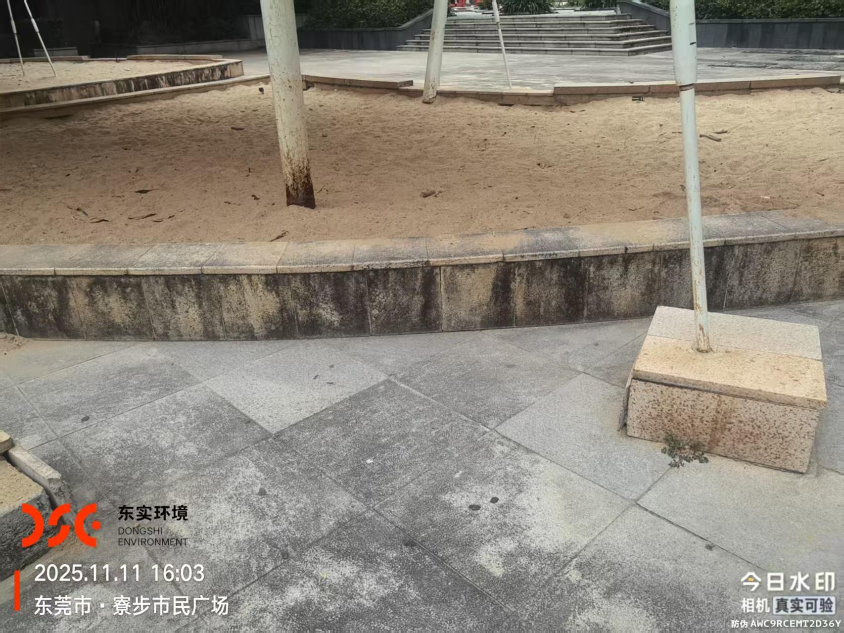 尊敬的市民,您好!您反映的问题已收悉,现回复如下:经查,寮步镇市民广场靠近乐荟城附近的健身设施以及地面,存在安全隐患,我们中心在2025年11月6日已经安排人员维修好。如有疑问,请联系寮步镇青少年活动中心,联系电话:83223103 。 经核查,情况属实。城管分局工作人员已督促环卫保洁承包公司加强保洁,将环卫保洁工作落实到位,现场已处理完毕。感谢您对我们工作的理解和支持!