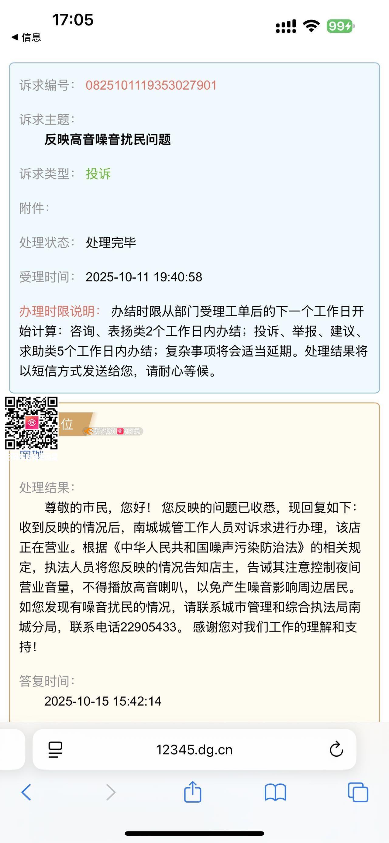 位于东莞市宏北路ucc寰宇汇金中心西侧约40米的云镜 bistro bar,6月底开业,经常晚上7点-10点半发出严重噪音,噪音来源于门店雇佣的驻唱歌手,但咨询过文旅,其经营范围不支持驻唱,已反馈给12345,但一周多过去,无回复,这个店建于一个露天停车场中间,且店也是露天的,无屋檐遮盖,发出的噪音严重影响居住在隔壁的高层楼房,从9月开始向城管投诉,虽然城管回复已处理或已派人前往警告,但是音量并无降低,要求停住驻唱行为,控制音响音量。 驻唱行为一般是周中随机3-4天,周末必有,若需到现场勘察请选择周末