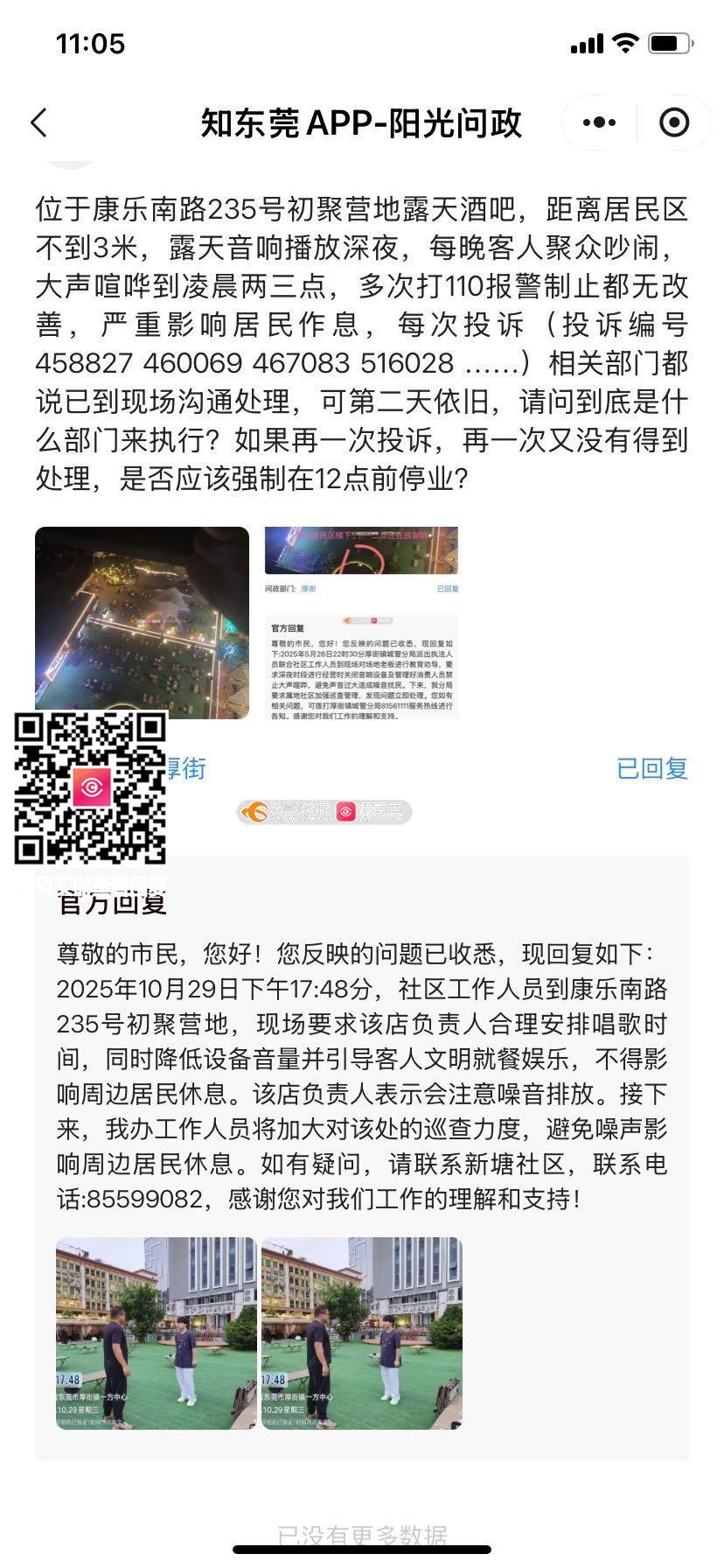 位于康乐南路235号初聚营地,长达两年的商业噪音,长期扰民,上周投诉完,这周又开始低音泡播放到十一二点,客人又大声喧闹,最后又打110制止,执法部门不要再说这种劝说,没有用、没有用、没有用(随便一个小员工就应付过去),这种离居民区零距离的的商业噪音,请强制执法!这次投诉后再出现这种问题的话,阳光网应该曝光嘛?