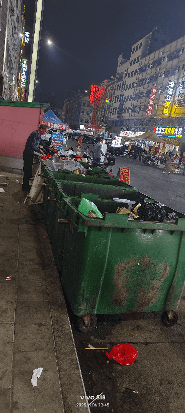 尊敬的市民,您好!您反映的问题已收悉,现回复如下:收到反映的情况后,我们于2025-11-8日上午9:25分联系您,无人接听,经核查,该道路旁是美食街市,垃圾产生量较大,所以需要配置多一些垃圾桶,市民是在11点左右看到有垃圾桶没有堆满垃圾,但是该街道好多商户都是在凌晨1、2点才将垃圾放置在垃圾桶,早上去拉垃圾的时候都是堆满的,至于垃圾桶污水及蚊虫问题,工作人员已对该片区的环卫主管进行严肃批评,要求如其加强清洗并进行消杀,解决垃圾桶污水和蚊虫滋生问题。如有疑问,请联系求富路社区综合办,联系电话:83035861。感谢您对我们工作的理解和支持!