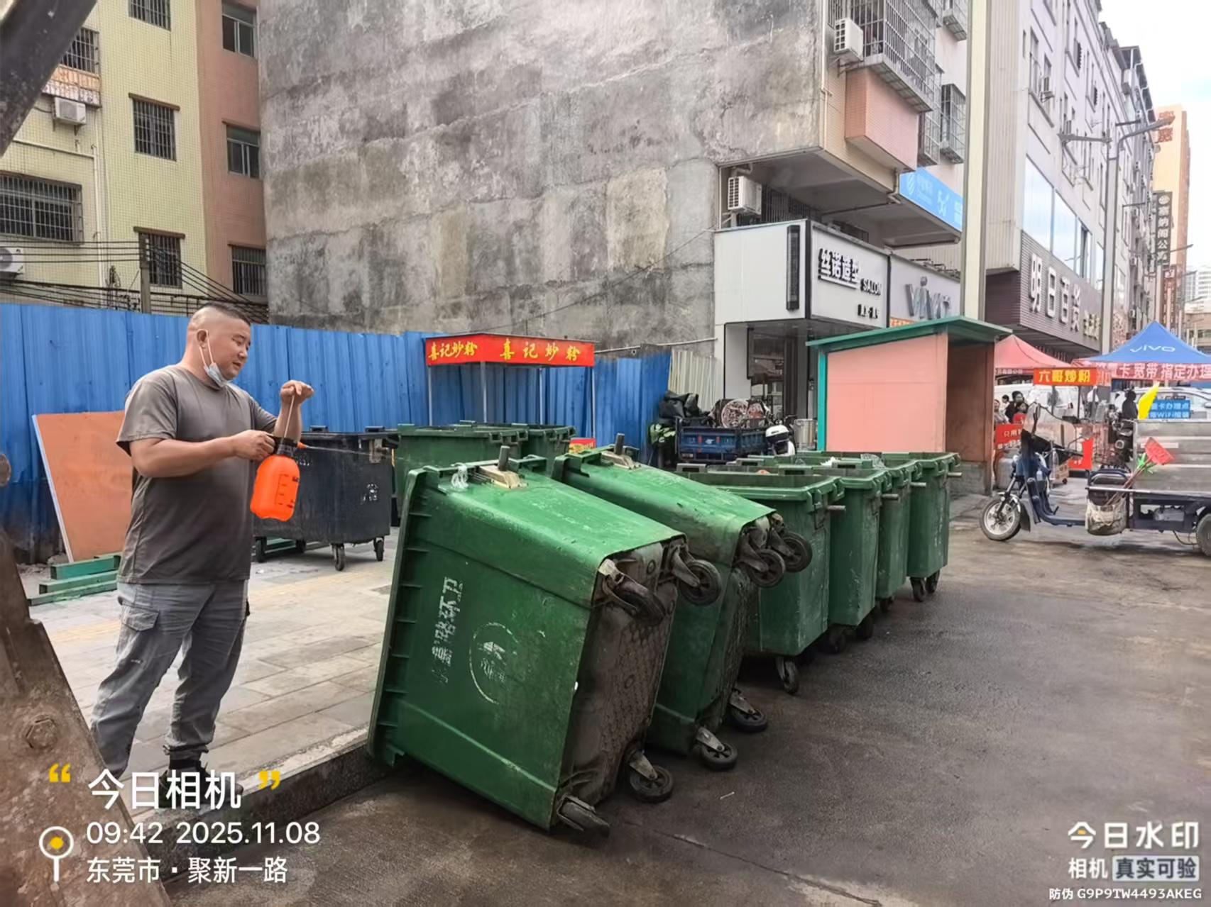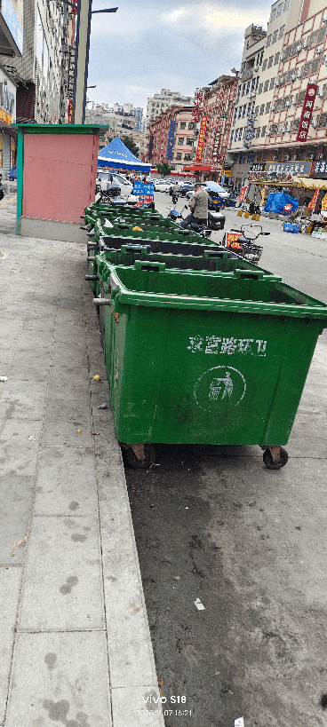 半个月之前投诉过垃圾桶逐渐增加,经过整改,就改了两三天后来还是一样,之前工作人员打电话跟我说这里垃圾多,要放多桶, 我多次晚上十一点后看到垃圾桶还是很多空的。都知道大朗1号街上人是最多的。但是垃圾桶还是空了好多个,我拍下图片都有日期时间,垃圾桶里面的积水也没有倒到下水道。都倒在街面上。经过臭气熏天。蚊虫滋生,这边的环卫工人有时候工作也极为消极。隔壁松柏朗社区天天有人巡查积水,早晚喷雾消毒。这里的去营造蚊虫滋生的环境。