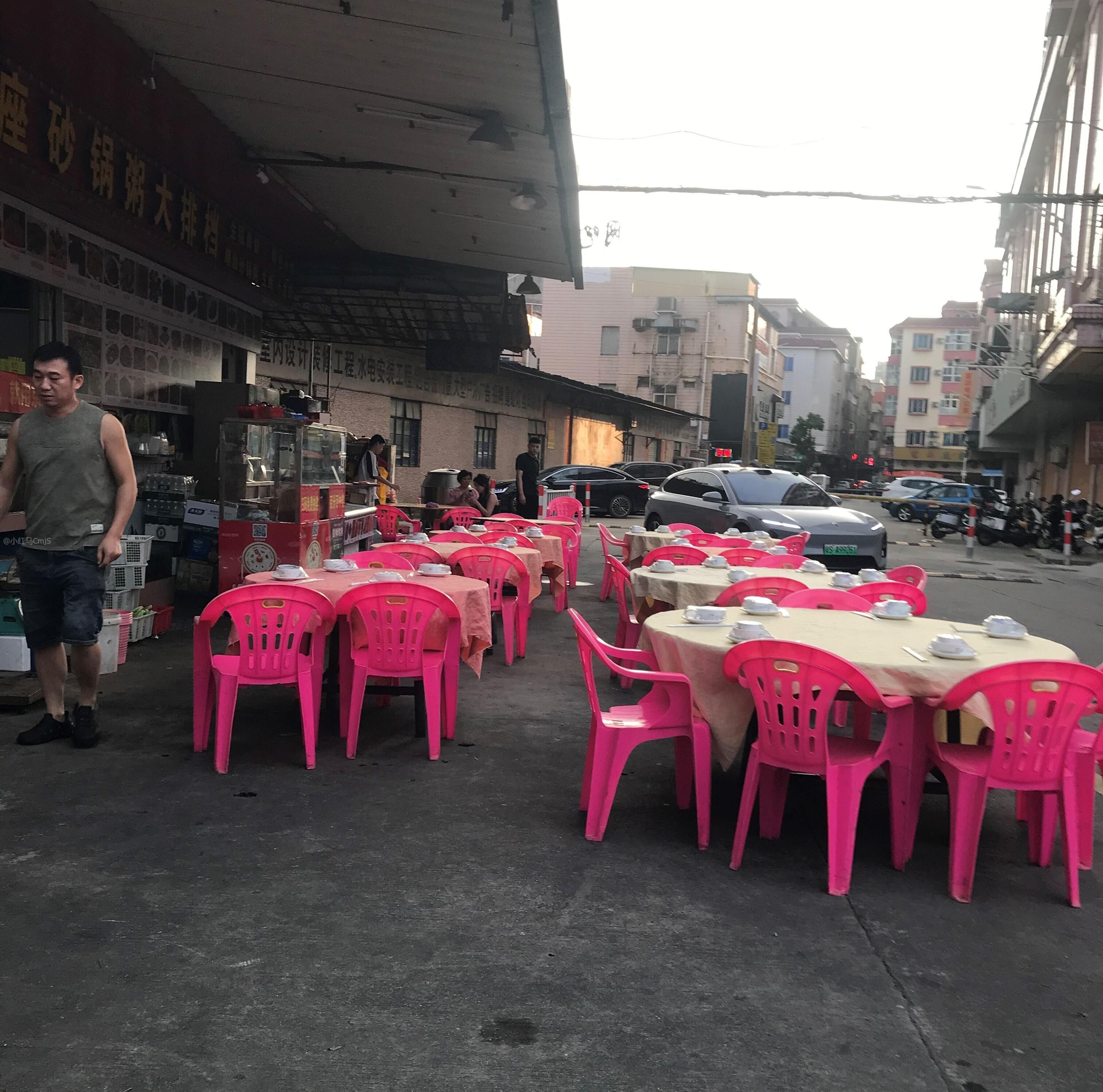 大朗镇大井头美景商业横街荣座砂锅粥一直占道经营,并私下把附近的公共空闲位置放上雪糕筒,凳子,护栏,等物品作为自己的停车位,现在更是把停车场出口都挡住!每天晚上到早上从停车场出来,都很不方便,请相关部门处理,同时商家都把餐桌摆在画了消防通道的网格上,相关部门都不处理的吗? 图片清晰可见,从停车场出来的汽车,都是要往左边打方向才能出来,试问,如果是新手,直接撞上用餐的客人,责任算哪个的? 希望相关部门认真处理,还市民一个正常的出入。