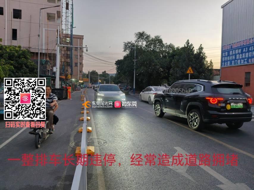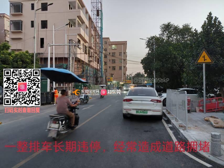 东莞市黄江镇星辉三街,道路本来就窄,而且经常有大货车出入,道路边经常违章停着一整排车,造成拥堵,希望有关部门处理一下,谢谢!