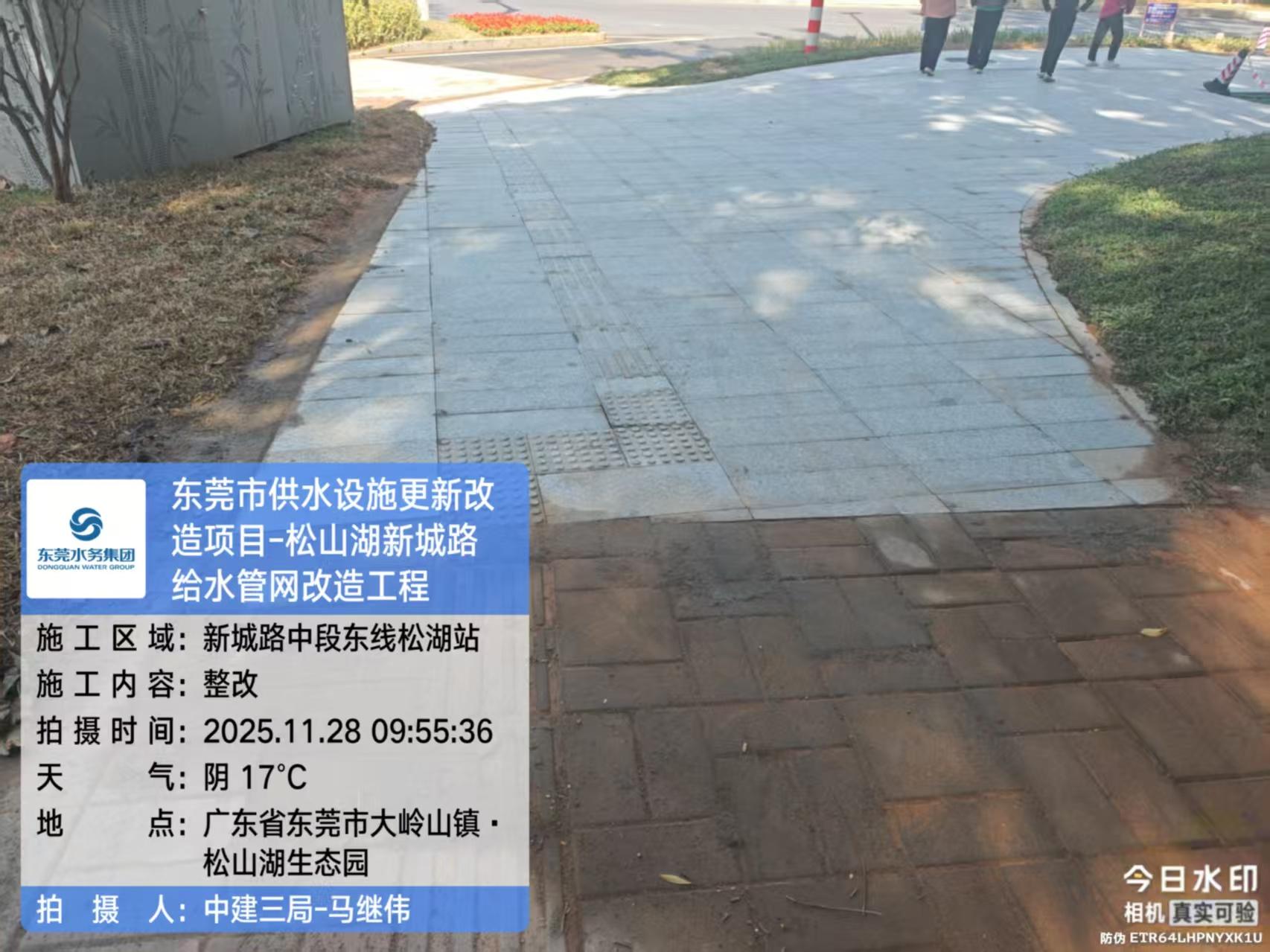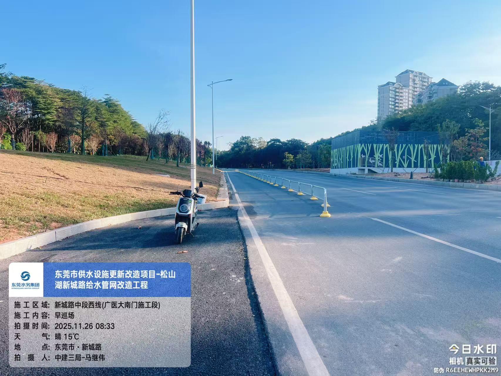 尊敬的市民,您好!您反映的问题已收悉,现回复如下: 收到您反映的情况后,我们于2025年11月20日9:59对诉求进行办理。您反映问题的工程为东莞市水务环境投资控股集团建设管理有限公司(下称“建设公司”)负责代建管理的东莞市供水设施更新改造工程新城路给水管网改造工程。施工单位为中建三局集团(东莞)投资建设有限公司。