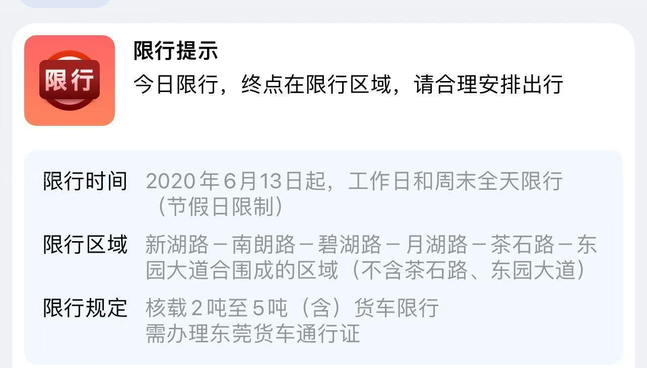 尊敬的市民: 感谢市民对园区道路交通安全管理工作的关心与支持。关于市民反映的问题,2024年9月30日,东莞市公安局已发布关于调整货车限行范围的通告,并通过微信公众号“东莞交警”进行推送。相关政策于2024年12月1日正式施行,建议市民按照限行政策通行。关于市民反映的问题,我大队工作人员已联系市民解释,并已告知市民可携带相关资料前往我大队业务办理大厅办理相关业务,业务咨询电话0769-22891027。 特此回复。 松山湖交管大队