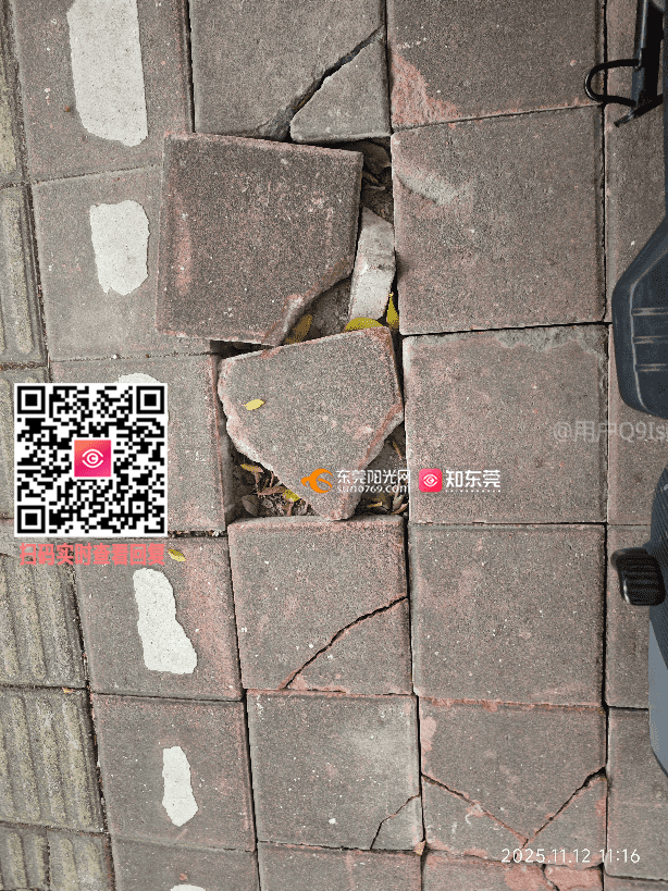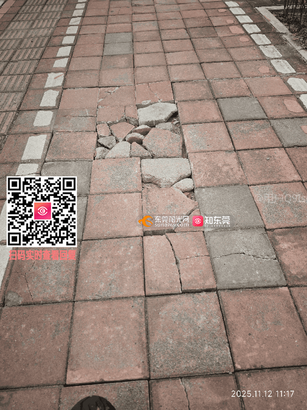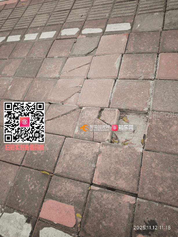 东园大道附路东华学校路段的人行道破烂严重影响出行安全